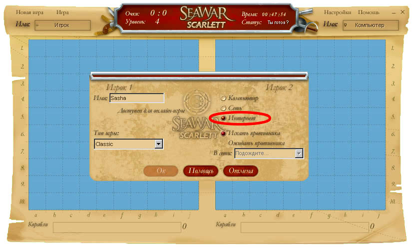 При этом, играя по сети или через интернет, можно общаться друг с другом через окно чата, в котором также отображается состояние соединения и статистика общения.