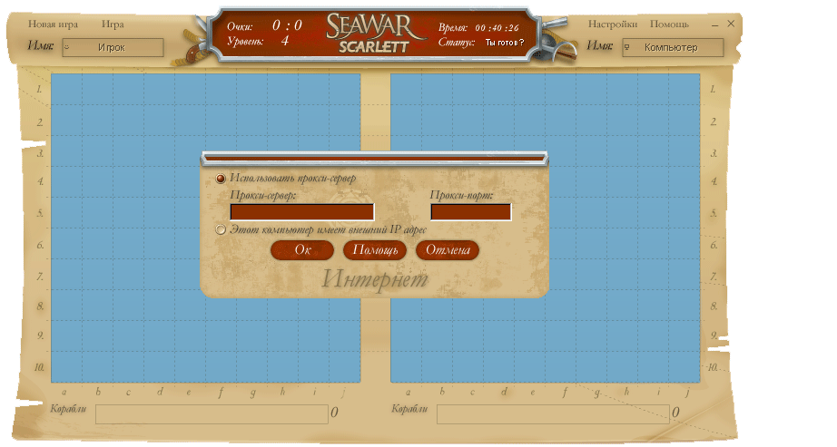 3. Если подключение к Интернет происходит через Proxy, настройте его параметры через пункт меню "Настройки/Интернет".Игра по локальной сети