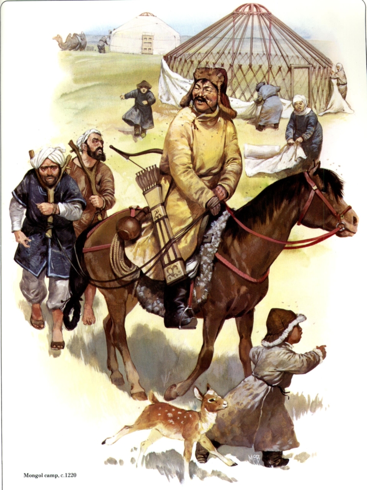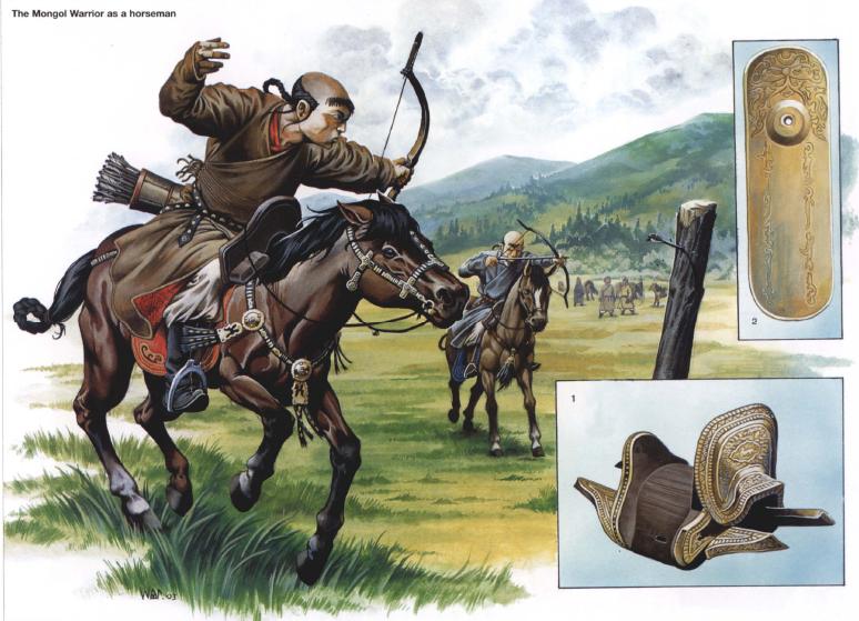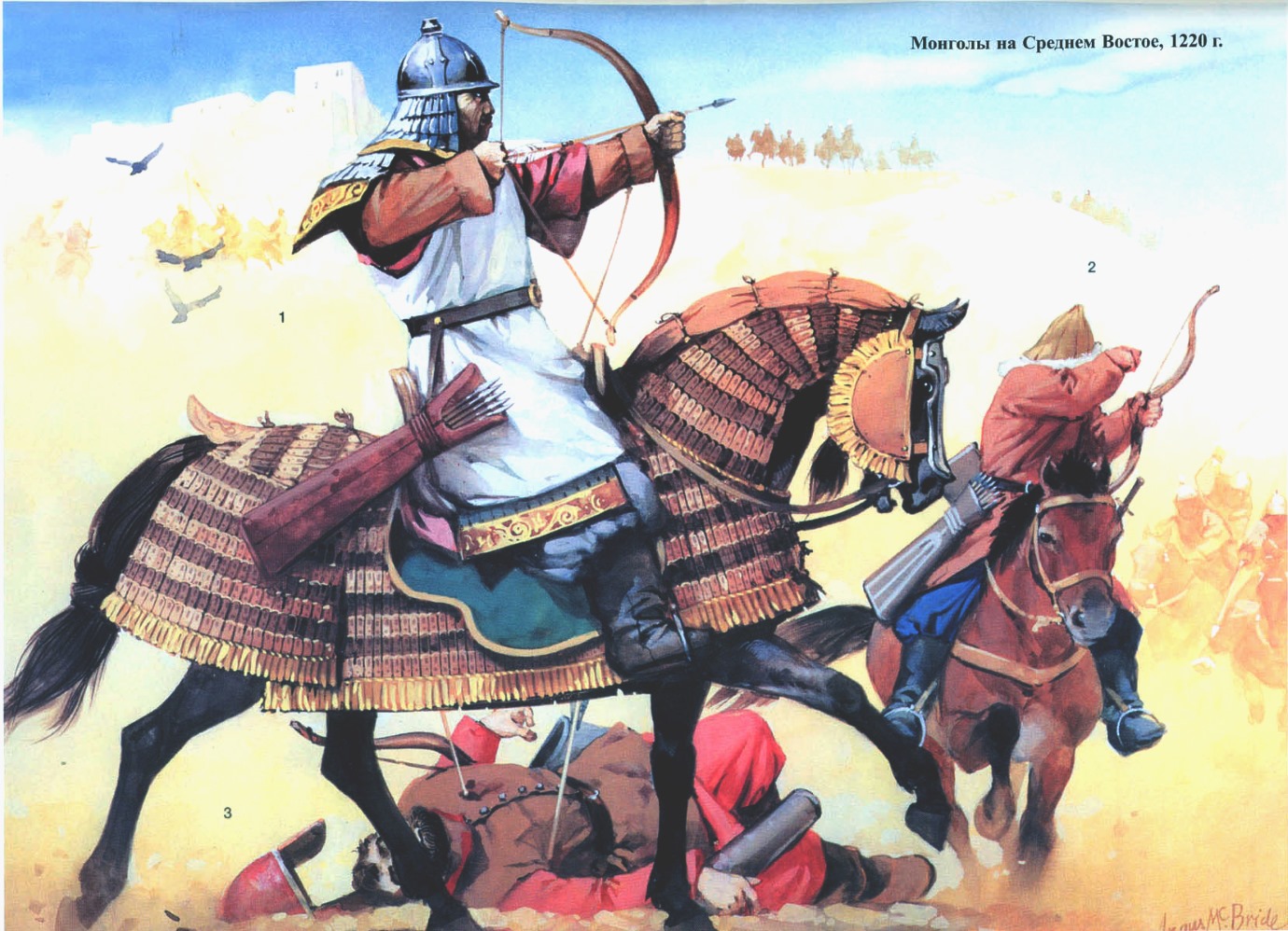 | Молодые воины тренируются стрелять на скаку | Монголы в походе | Знатный и простой монгольский воины в Персии 1220 г. |