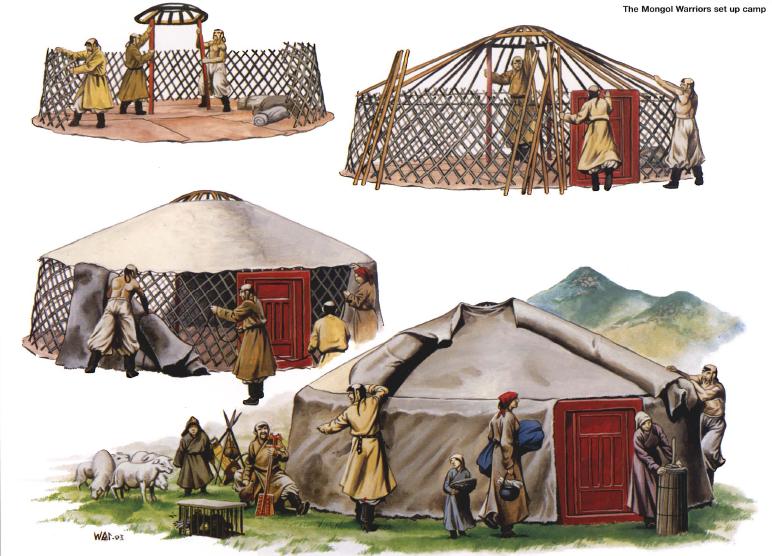 Монгольские племена в 12 в. занимались скотоводством и охотой на зверя; жили они тогда в кошемных кочевых кибитках. Кочевать заставляет их необходимость перемены пастбищ для их скота.