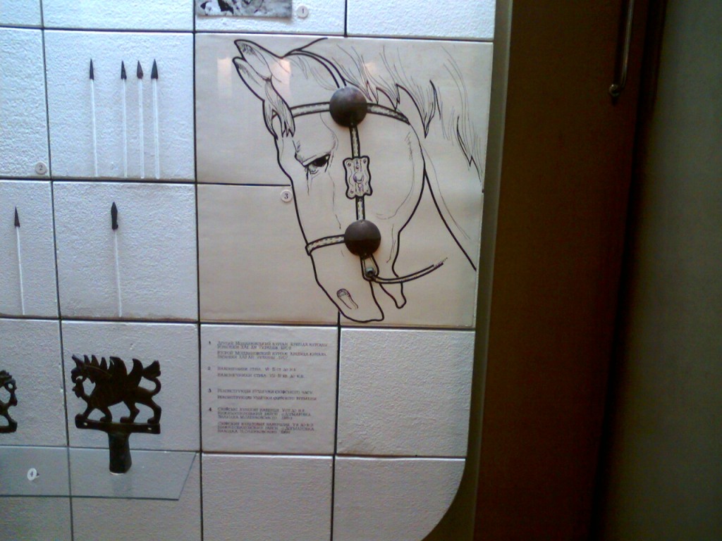 Описание: Освещение экспозиции отсвечивает мягким желтым светом. Блики которого и падают н экспонаты. Размеры определял "на глаз", поэтому мой анализ не на что не претендует.