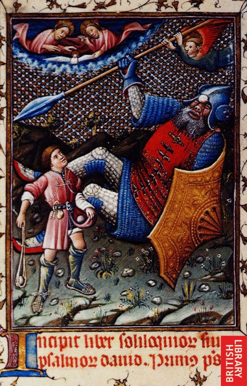 Давид и Голиаф - миниатюра псалтыря Альфонсо V Арагонского, 1442 год
