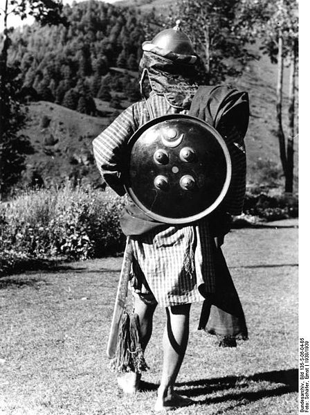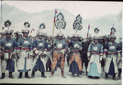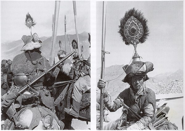 Эта сборка была собрана на основе фотографий, сделанных в 1930-х и 1940-х годах в столице Тибета Лхасе во время фестиваля Великой  молитвы, в которуй шли войска церемониальной бронированной кавалерии, носили стандартный набор оборудования, как это предусмотрено центральным правительством Тибета, вероятно, из  середине семнадцатого и восемнадцатого века . Он включает в себя шлем, кольчуги, набор из четырех зеркал, бронированной пояс,  лук и колчан, самопал-ружье, патронташ с порохом и пулями, и короткое копье, а также седло, ковер седла, и сбрую лошадьи. Вооруженные и оборудованныйе таким же образом, чиновники тибетского правительства периодически собирались, чтобы продемонстрировать умение на лошадях с мушкетом, лук и стрелы, копьем до середины ХХ века.