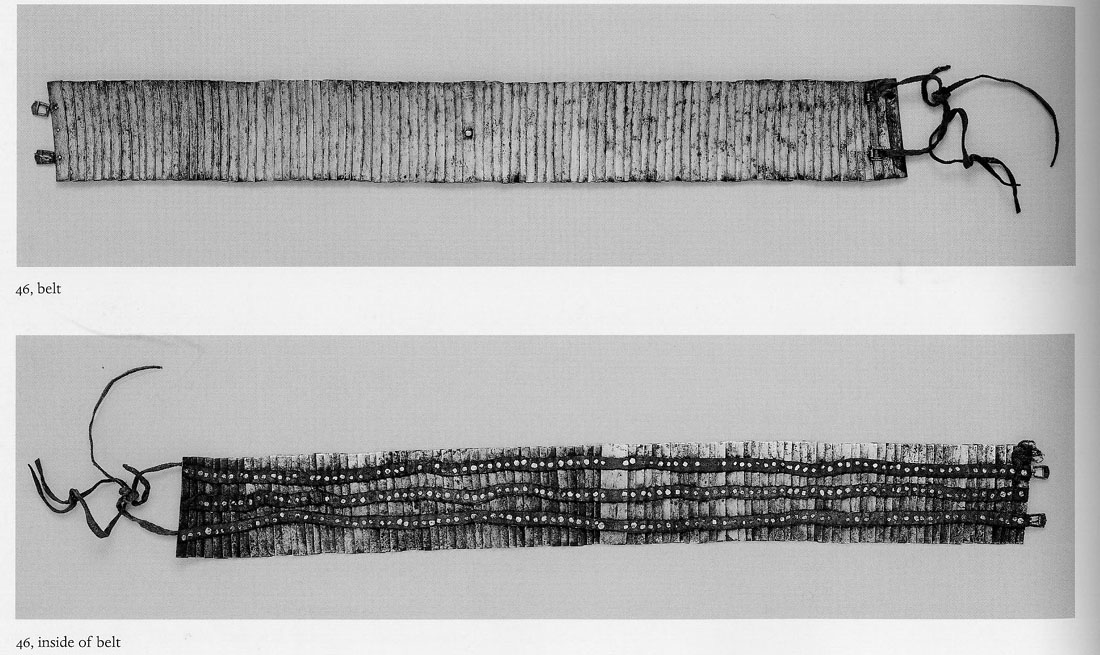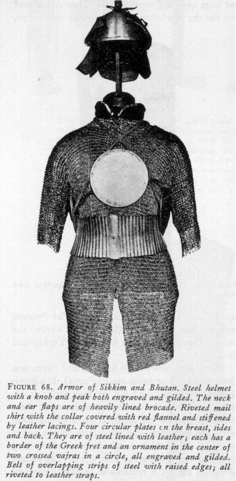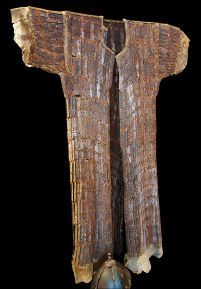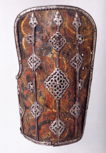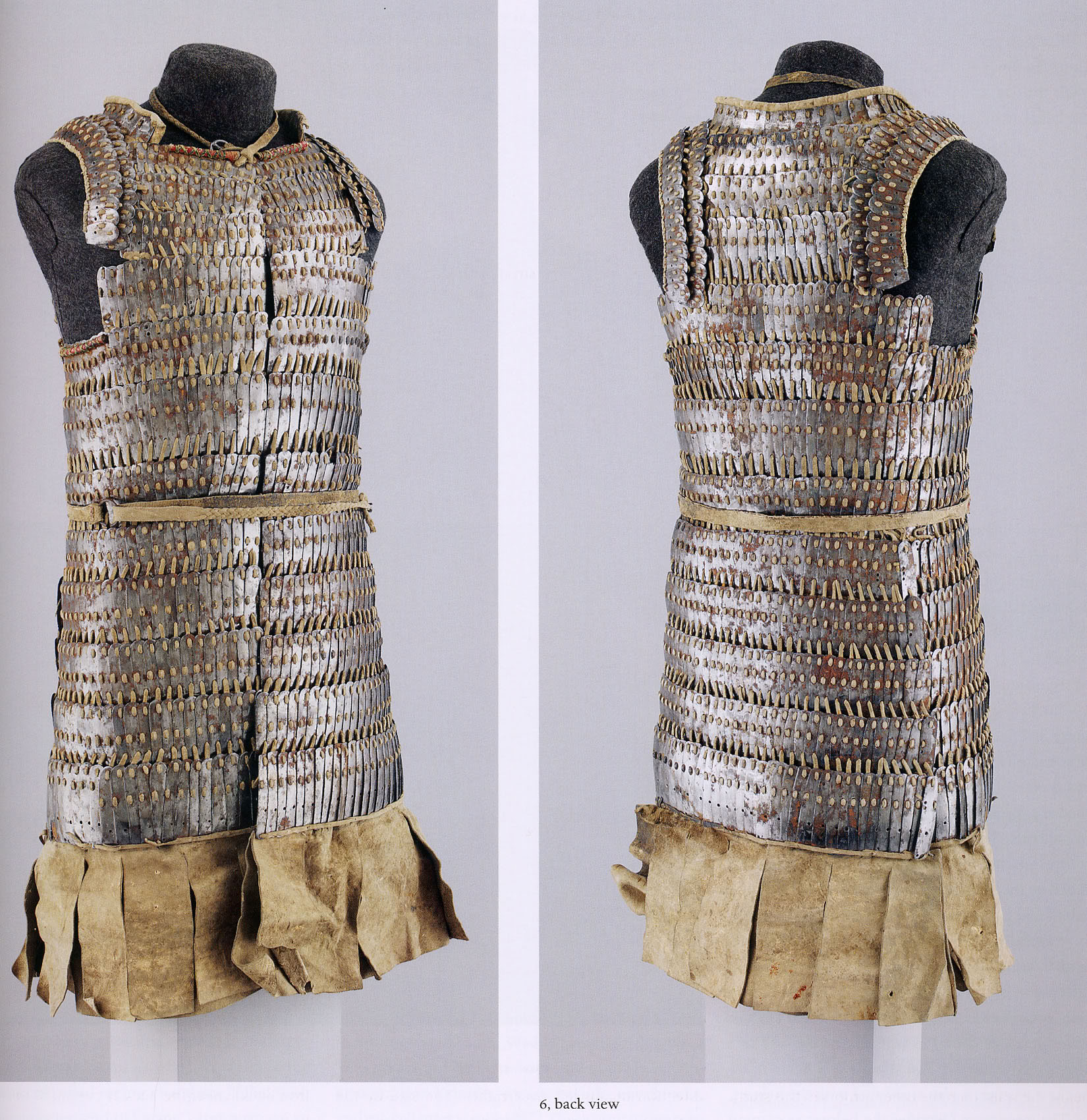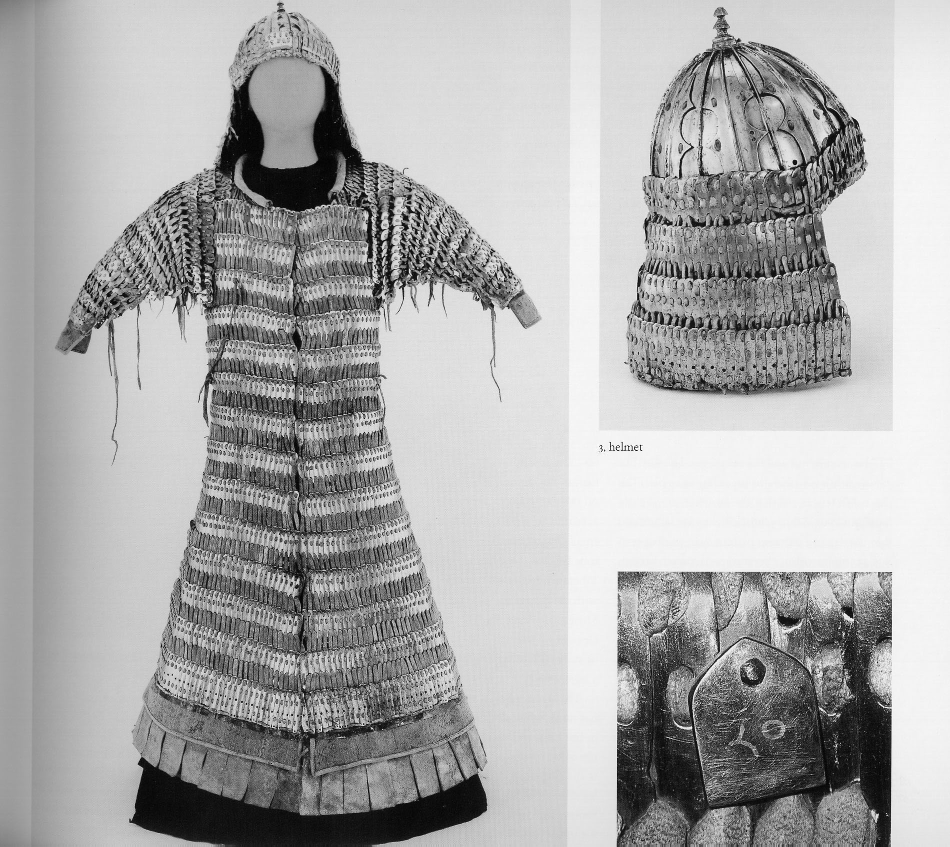 Эта броня необычно как для ее полноты и за то, что из в два раза больше строк, как большинство других пластинчатые доспехи. Кроме того, это единственный пример в Западной сбор, и, вероятно, одна из немногих в мире, который имеет полный бронированных рукава. Подобные рукава этой редкой формы были также найдены в развалинах Сапаранд (Tsaparang), столице древнего царства Гуге, в Нгари (Западный Тибет). Этот шлем также является одним из наиболее полных и хорошо сохранившихся из восьми пластин пластинчатого типа.