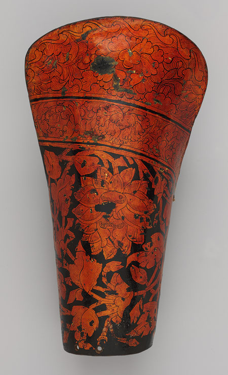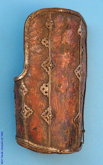 тибетский доспех 17 век  кожаный наруч с металлическими накладками богато украшенный наруч