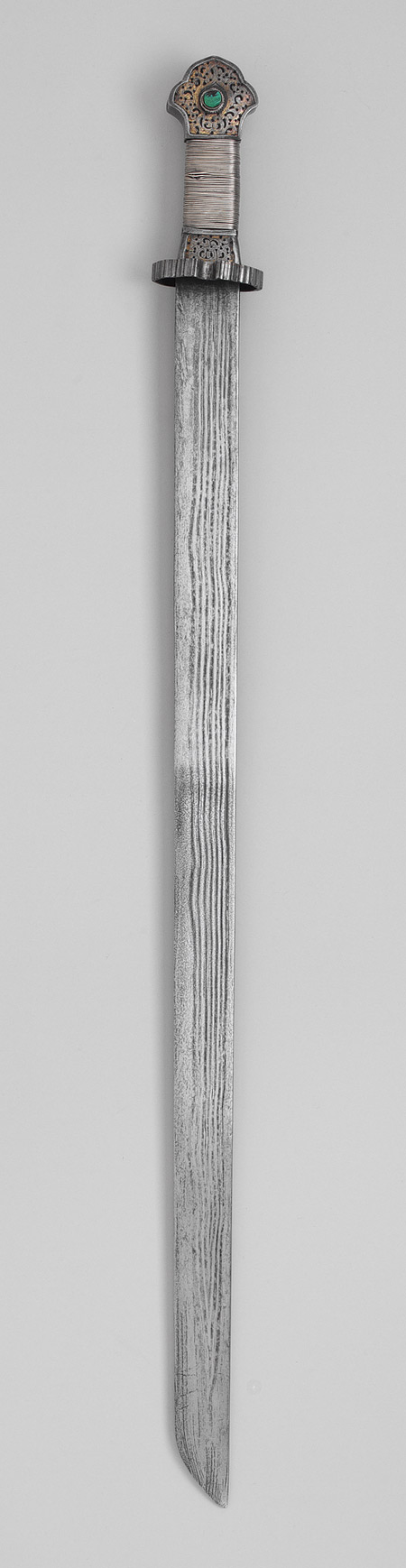 Этот меч является одним из лучших в небольшой группе редкие ранние мечи из Тибета. Его рукоять, включая захват, выполнен целиком из железа, которое было тиснение, точеные и насеченную в золото и серебро.