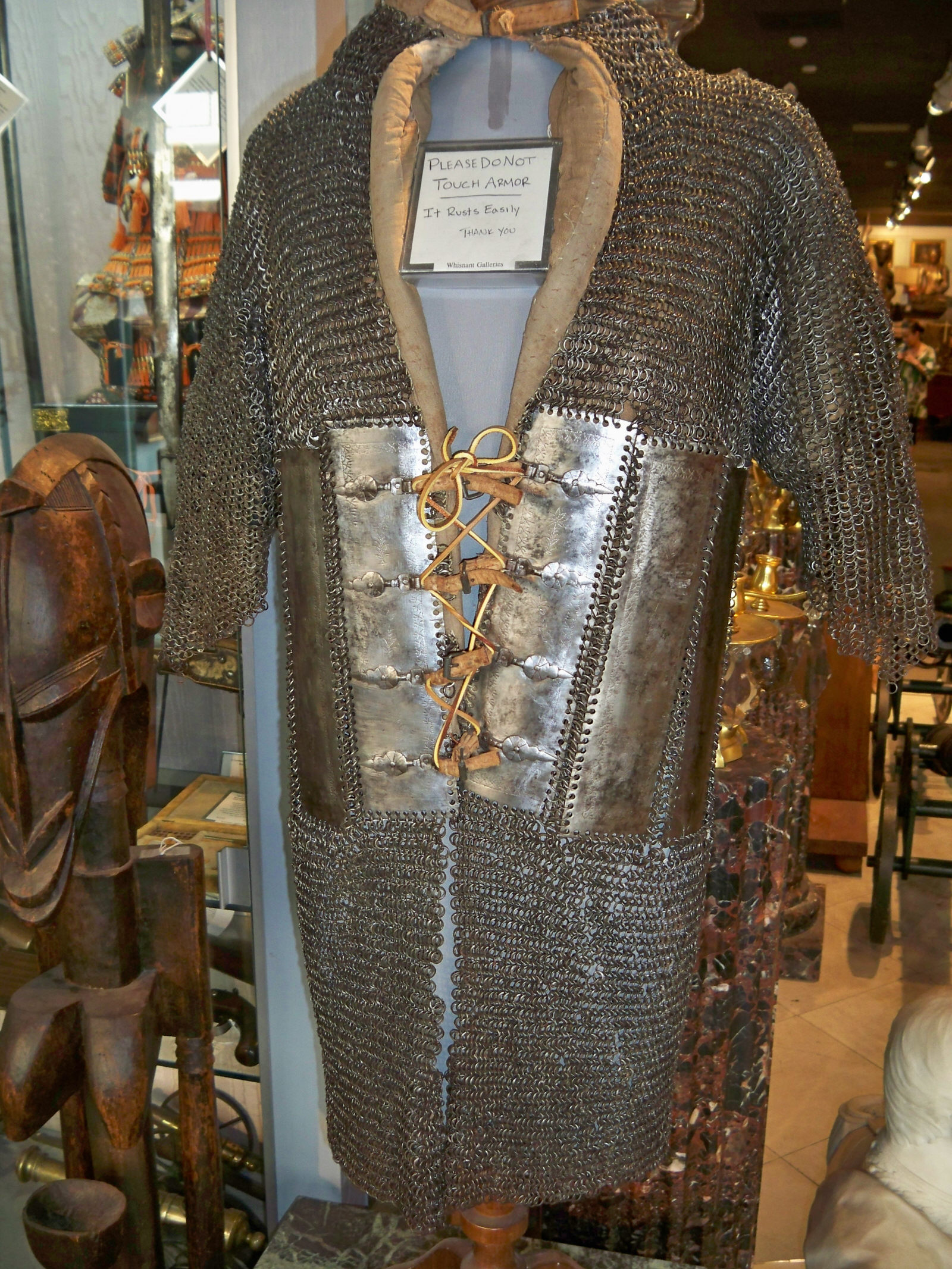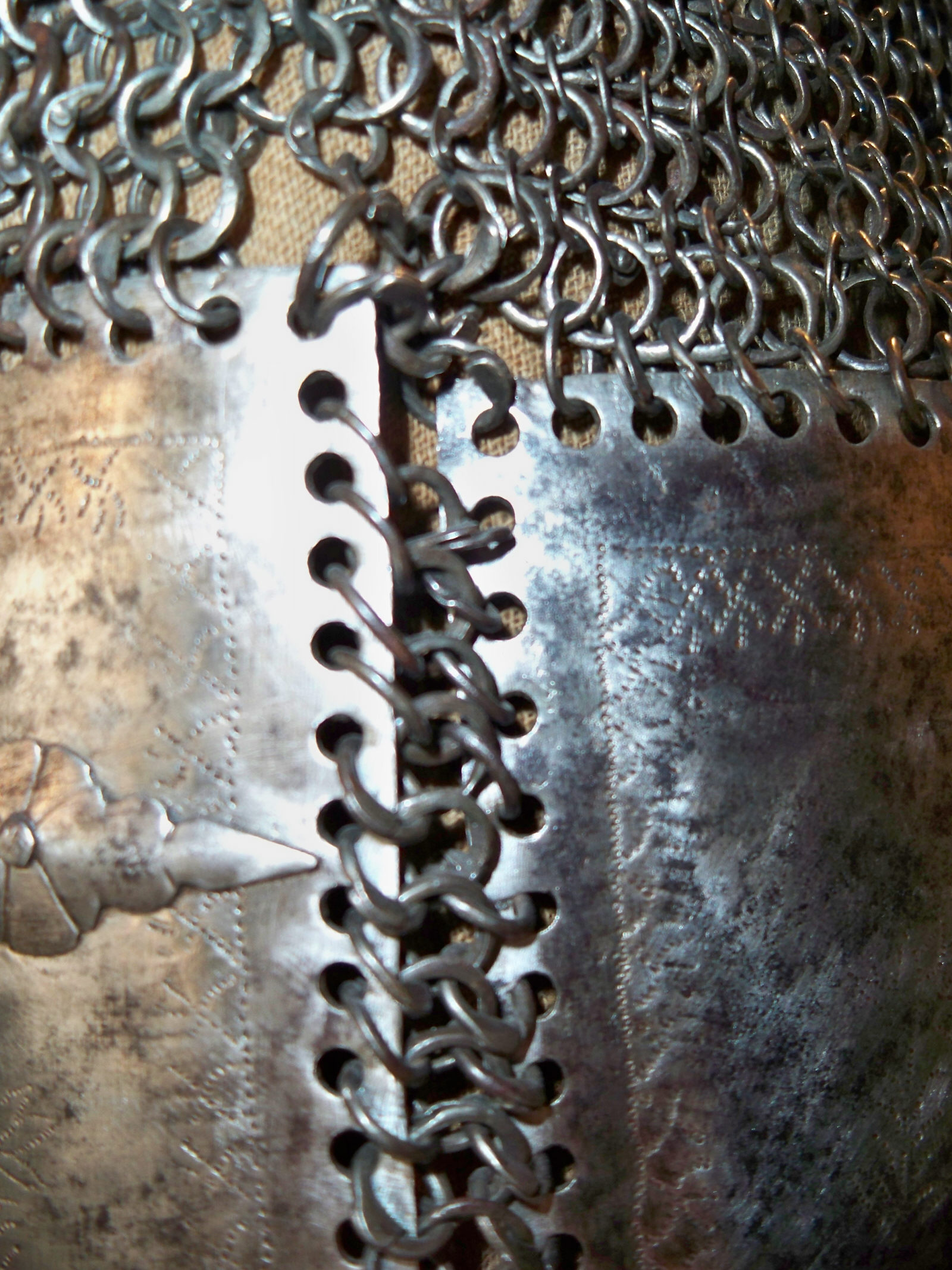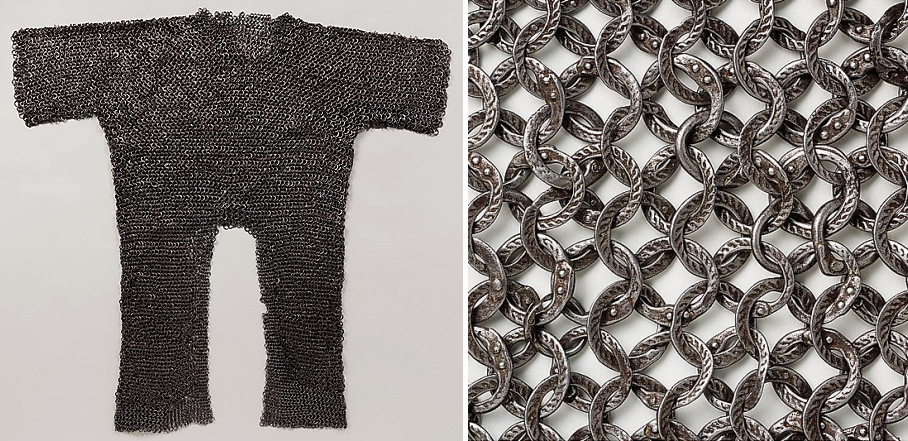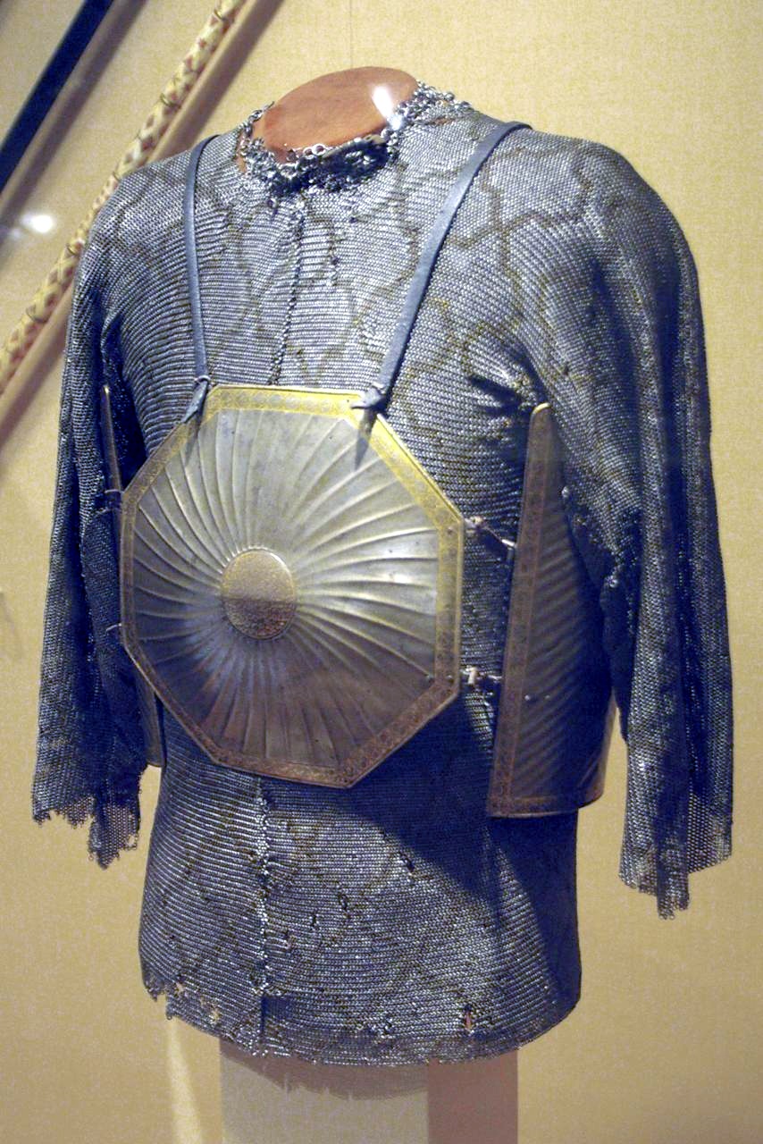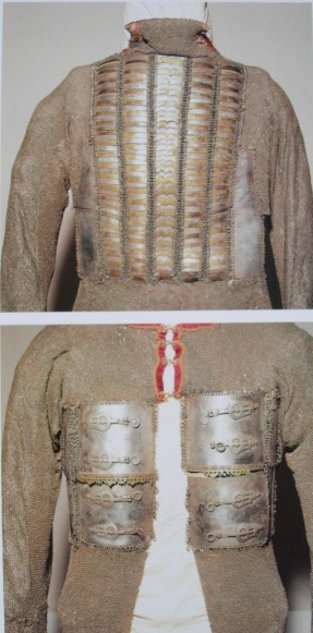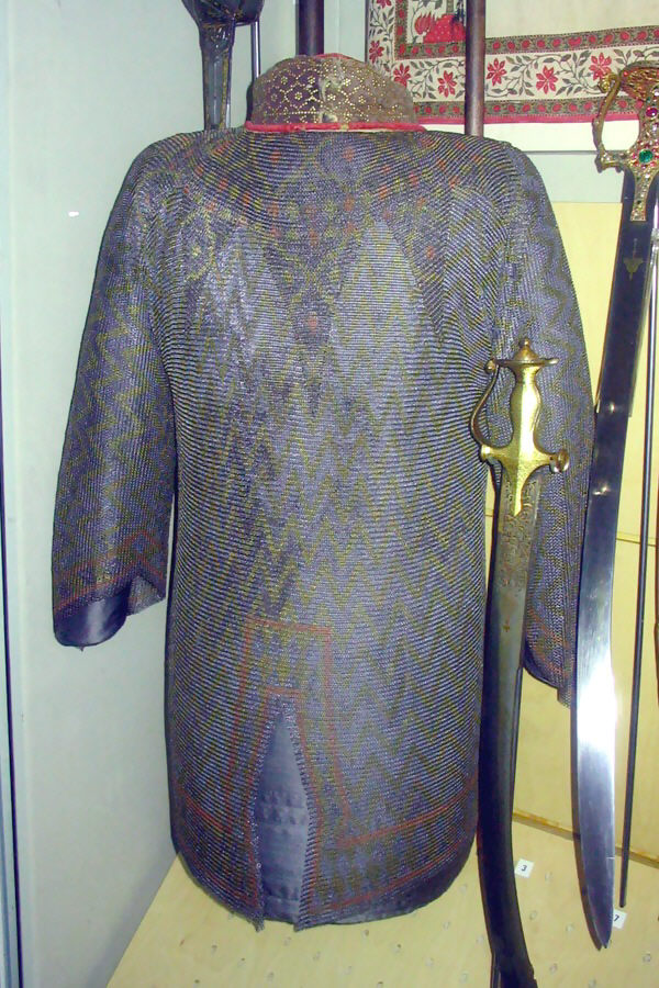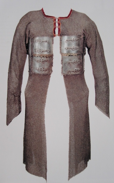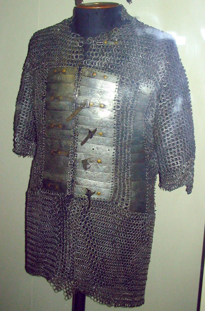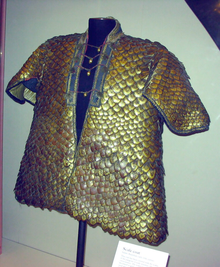 Также чисто индийским является кольчато-пластинчатый доспех из крупных вертикальных пластин, соединенных кольчужным плетением.
