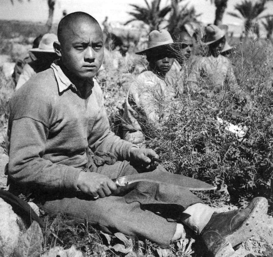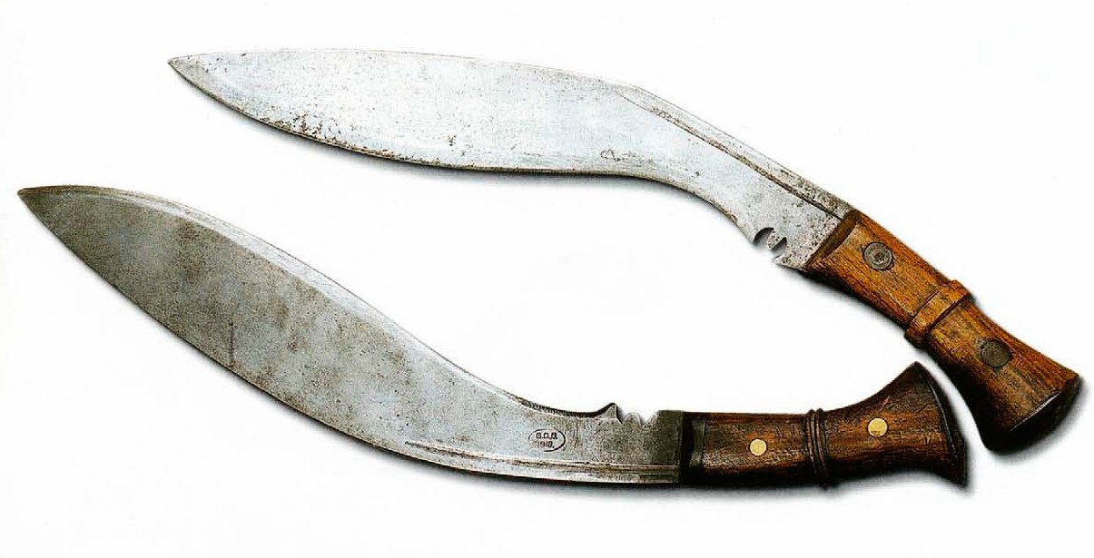 Непальские гуркхи с давних пор пользуются славой отличных бойцов. На снимке один из них точит свой тесак «Кукри» с помощью небольшого вспомогательного ножа. Кукри работает как нож, сабля, и как топорик, им можно прорубывать дорогу в джунглях и воевать. Удобен как в фехтовальном так и реверсном хвате.