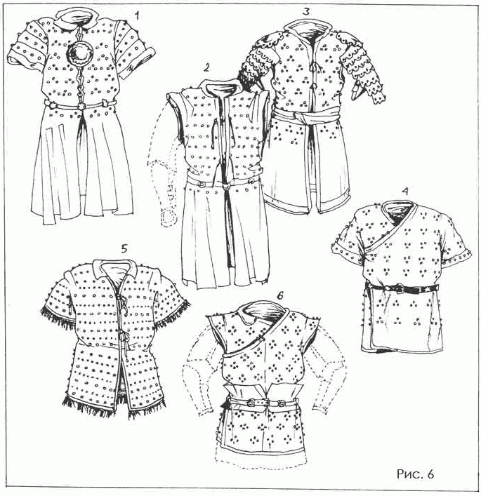 Интересные данные по защитному вооружению можно извлечь из среднеазиатского эпоса. "Сверкающие шлемы на голове" и "синее железо панцирей и лат" неизменно сопутствуют описаниям снаряжения героев и ханов [53]. Достаточно часто лучшие воины одевают несколько видов доспехов сразу: "... оба они отправились в путь, все, что надели на себя, - это панцирь, кольчуга и кюрееке" [54]. То есть в данном случае воины одели кольчугу, пластинчатый панцирь, поверх которого накинули цветные халаты.