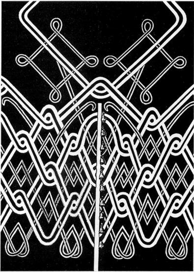 Таким образом, приемы декоративного убранства костюмов XI—XII вв весьма разнообразны. Это и кожаная аппликация, и вышивка металлическим галуном, сутажом или шелковым шнуром и бусинами, и использование металлических нашивных бляшек для создания орнамента.