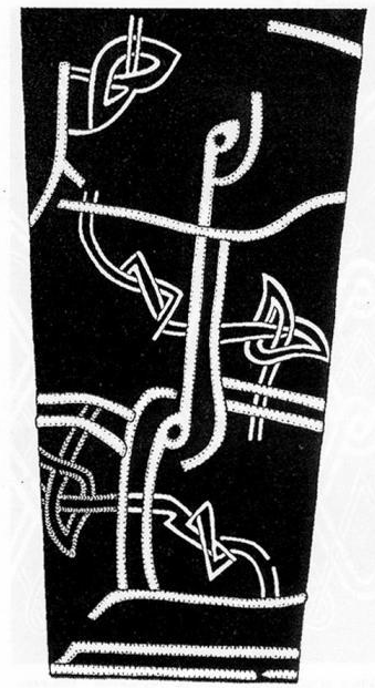 | Фрагмент орнамента на рукаве кожаного кафтана. И еще один фрагмент кафтана. Могильник Змейский. (находка В. Кузнецова). | |