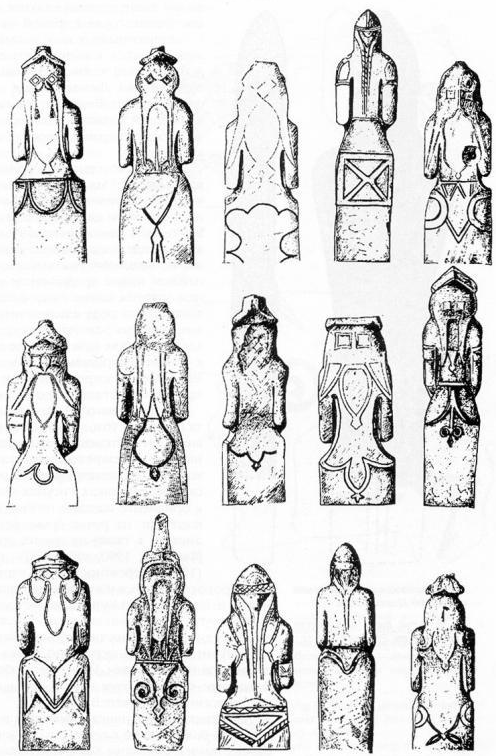 | Элементы бельдемчи на половецких изваяниях |