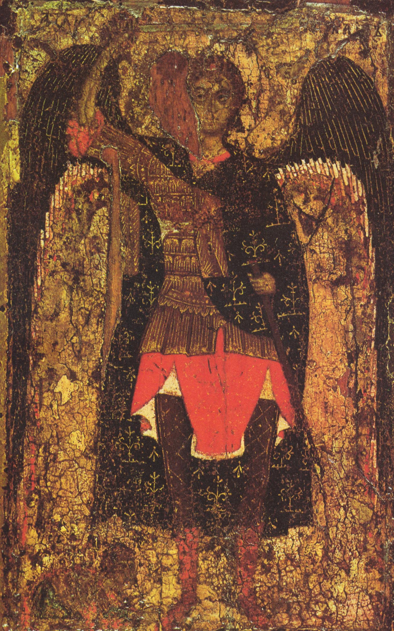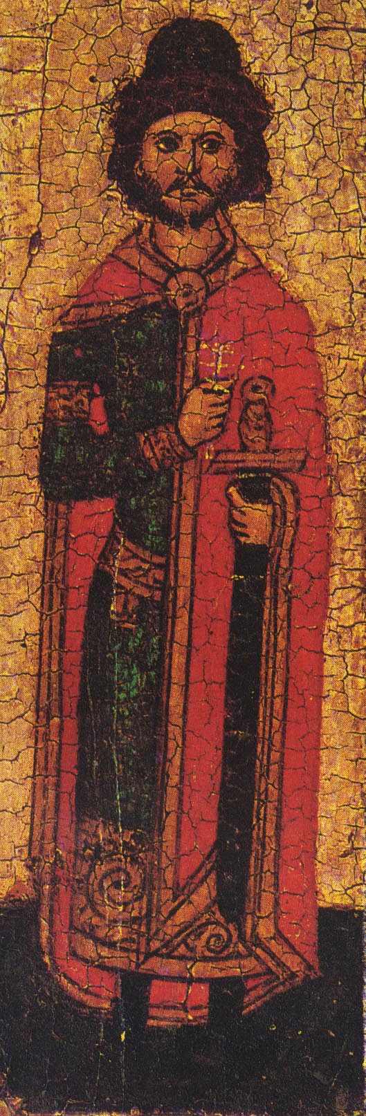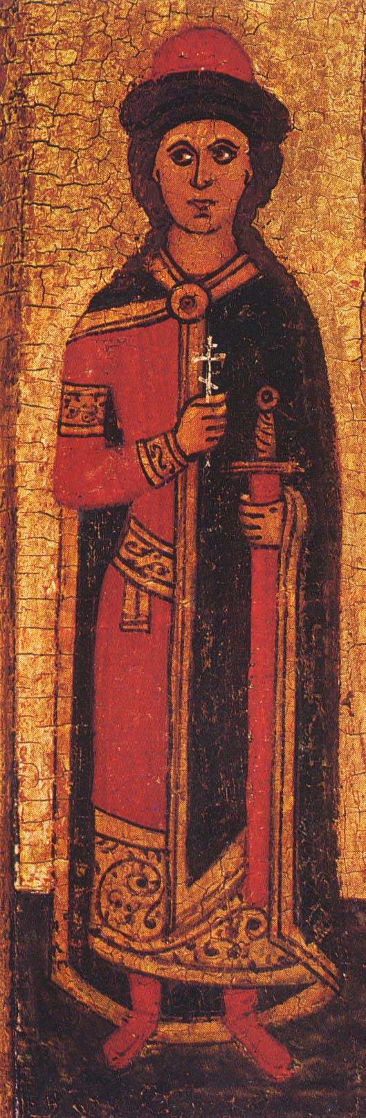 Длинный, почти до пят, застегивавшийся на правом плече драгоценной пряжкой плащ — корзно ("кързно”, "корьзно”) — носили, кажется, только князья. Во всяком случае, все упоминания о корзно в письменных источниках связаны с князьями. Корзно, как самая роскошная одежда, противопоставляется в церковной литературе бедной власянице. Многочисленны изображения корзно на иконах, фресках, миниатюрах. Это всегда очень красивые плащи из ярких византийских материй, иногда с меховой опушкой. У человека, одетого в корзно, свободна правая рука, а левая покрыта плащом, из-за чего такие плащи, как корзно или коць, вряд ли были удобной одеждой, да и вообще длиннополый плащ в обыденной жизни, вероятно, не давал нужной свободы движений. В особенности это можно сказать о жизни военной. Если в походе длинный плащ имел известные преимущества, закрывая ноги конного, то в сражении, которое в эпоху феодализма по большей части представляло собой рукопашную схватку, он мог только мешать. Вероятно, поэтому знатные и богатые воины поверх брони надевали плащи, также красивые, богато украшенные, но несколько иного покроя. Можно думать, что в Северной Европе был, по крайней мере, с Х-XI вв., распространен более короткий плащ, называвшийся луда или оплечье. Летописец не без иронии описывает варяжского конунга Якуна, носившего в бою "истканную златом” луду, которую, однако, пришлось бросить, спасаясь от русских войск. Шитые золотом оплечья новгородских богатеев упоминал в 1216 г. князь Ярослав Всеволодович, призывая своих воинов не льститься богатой добычей. Э. А. Рикман отмечает изображения легких плащей на фигурах всадников, украшающих стены Дмитровского собора во Владимире.