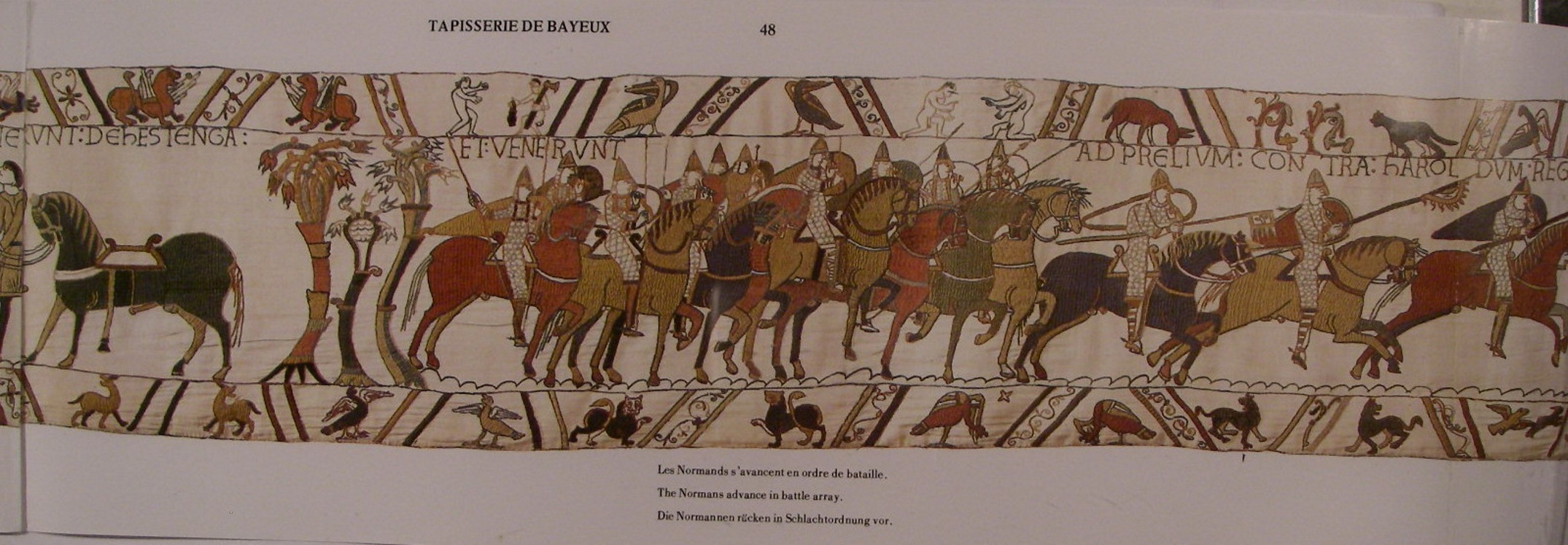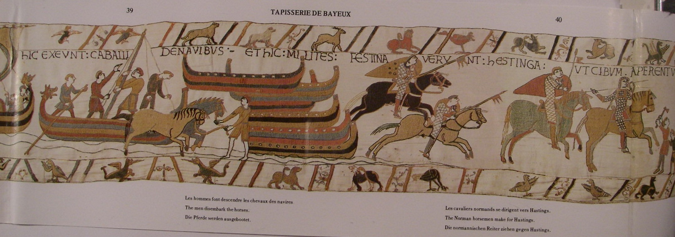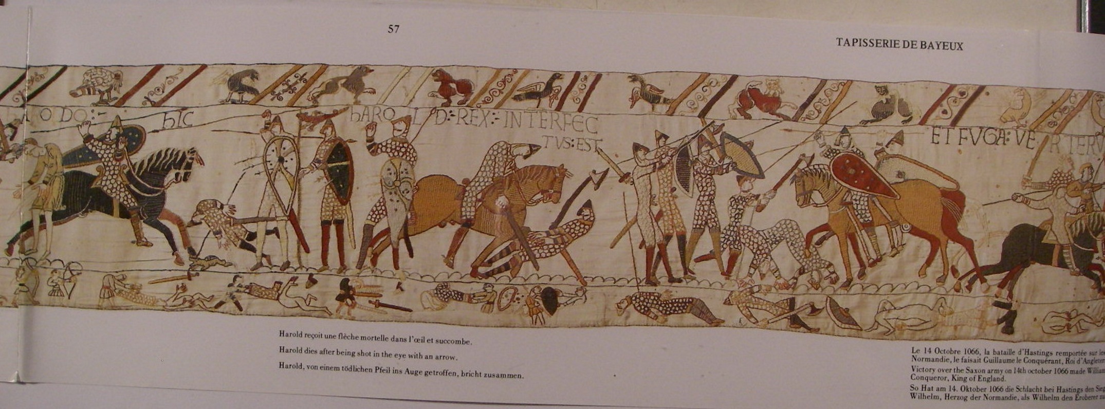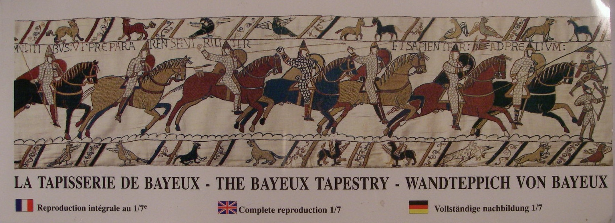 Гобелен Байо (Bayeux Tapestry) - хронологическая запись созданная в 11 столетии, является шедевром мирового значения. Это - вышивка на льняной ткани, при помощи шерстяных нитей различных цветов. Ответственность за выполнение этой работы было, согласно высокому статусу, доверена Англосакскому епископству, контролируемому Одо де Контевиллем, Епископом Байо сводному брату Вильгельма Завоевателя. Это "сценическое действо" свыше 70 метров в длину и 50 сантиметров в вышину, восстанавливает историю завоевания Англии Вильгельмом Завоевателем. История начинается в 1064 году.