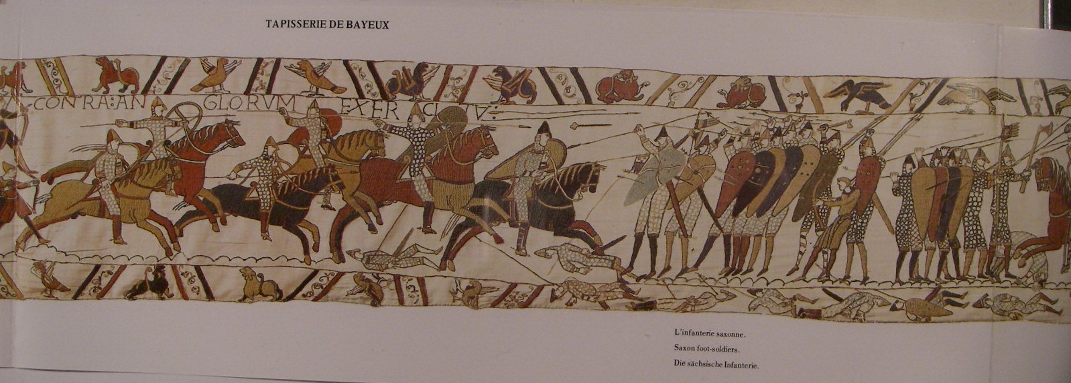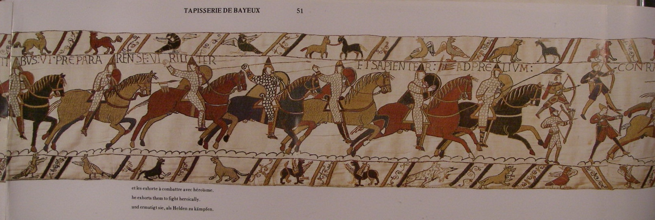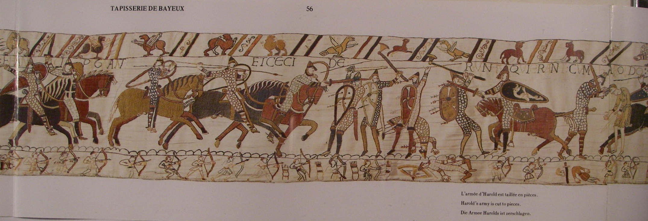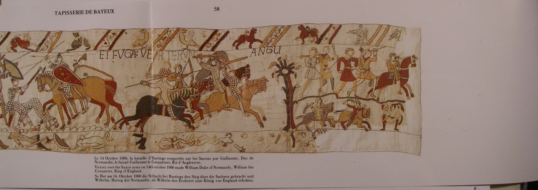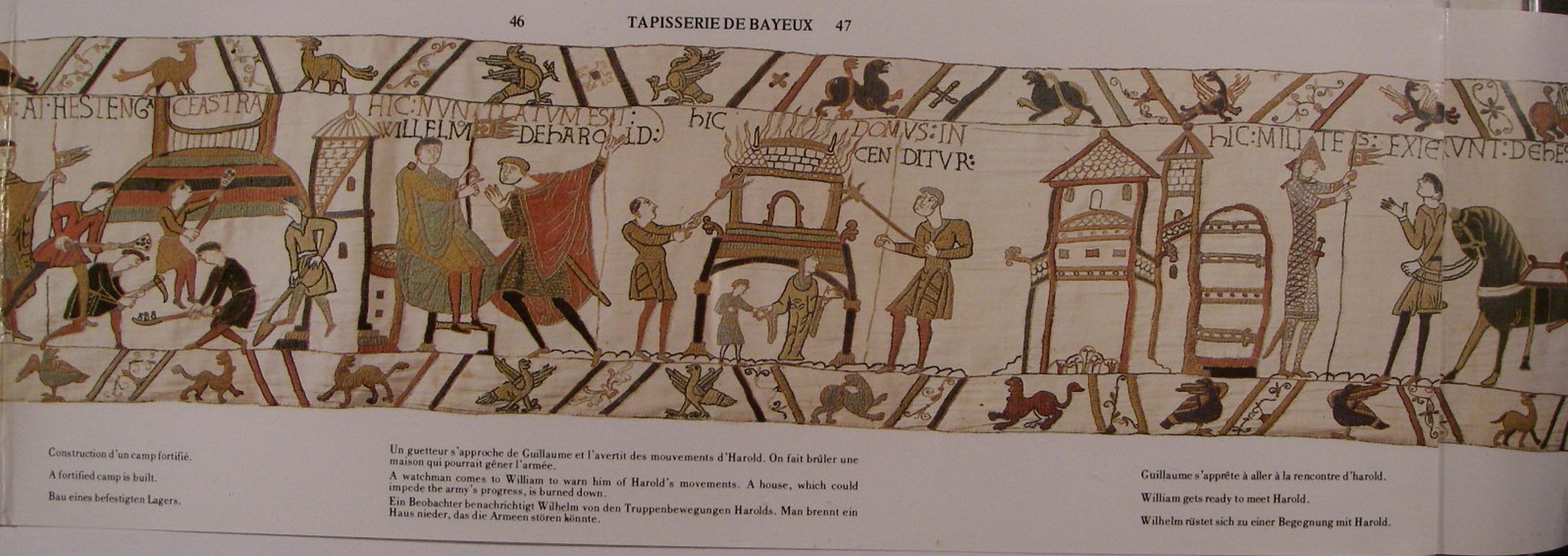 Гобелен Байо (Bayeux Tapestry) - хронологическая запись созданная в 11 столетии, является шедевром мирового значения. Это - вышивка на льняной ткани, при помощи шерстяных нитей различных цветов. Ответственность за выполнение этой работы было, согласно высокому статусу, доверена Англосакскому епископству, контролируемому Одо де Контевиллем, Епископом Байо сводному брату Вильгельма Завоевателя. Это "сценическое действо" свыше 70 метров в длину и 50 сантиметров в вышину, восстанавливает историю завоевания Англии Вильгельмом Завоевателем. История начинается в 1064 году.