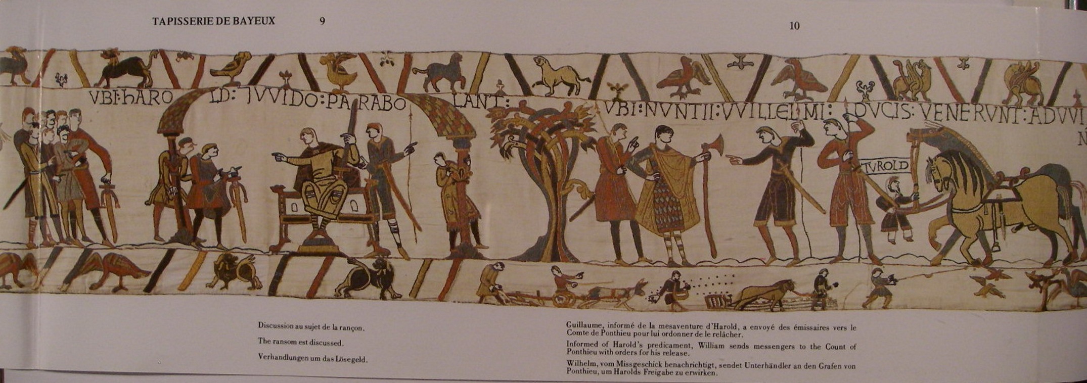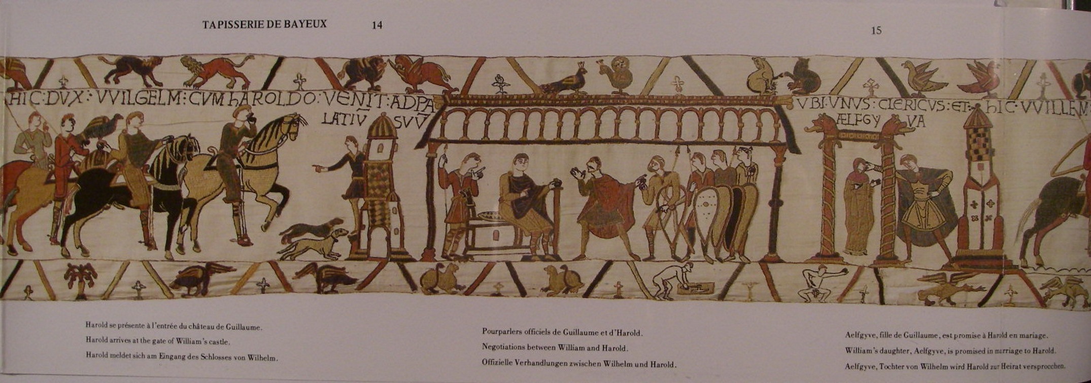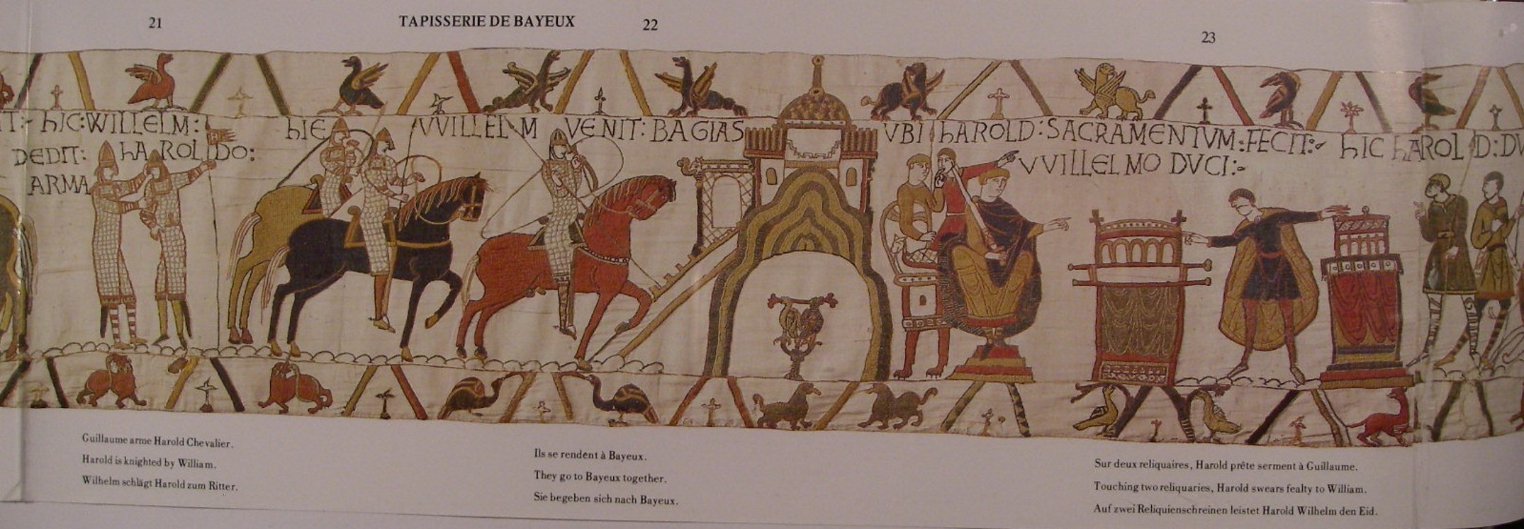 В это время, Эдвард Исповедник, Король Англии, чувствуя, что это его смерть близка и не имея никаких детей, запросил своего зятя Гарольда пойти в Нормандию и информировать Вильгельма, который был Герцогом этой провинции, что он, Вильгельм, был назван Эдвардом как его преемник трона Англии...