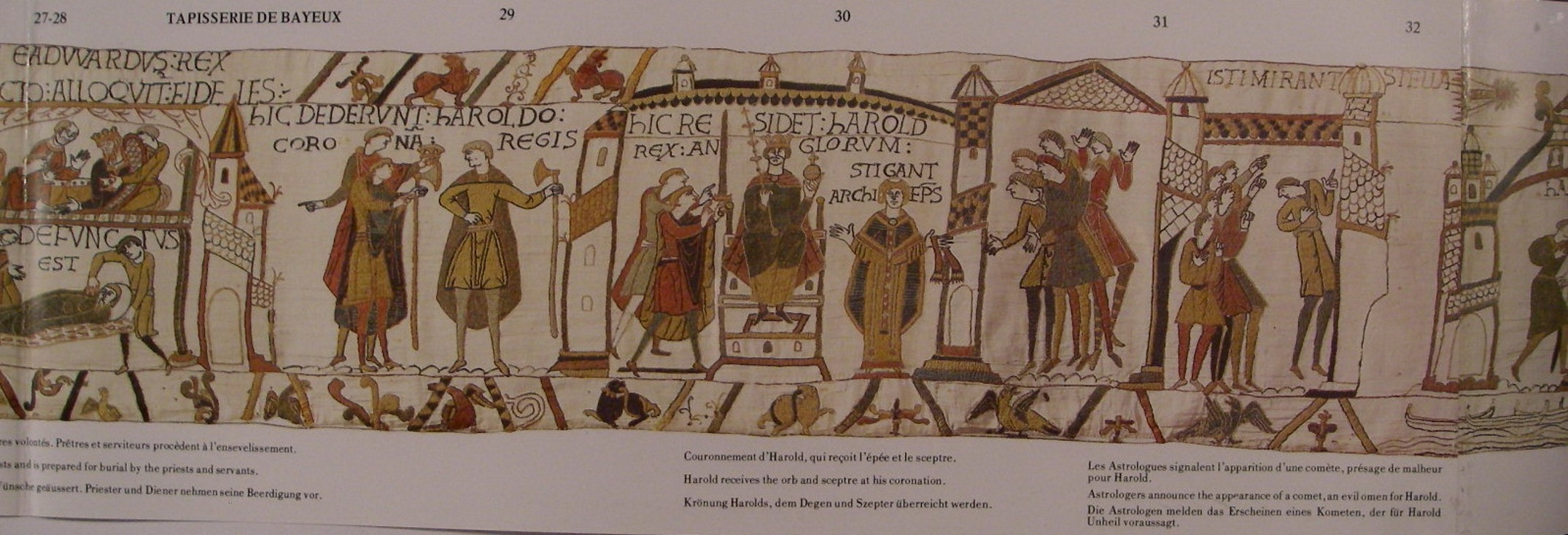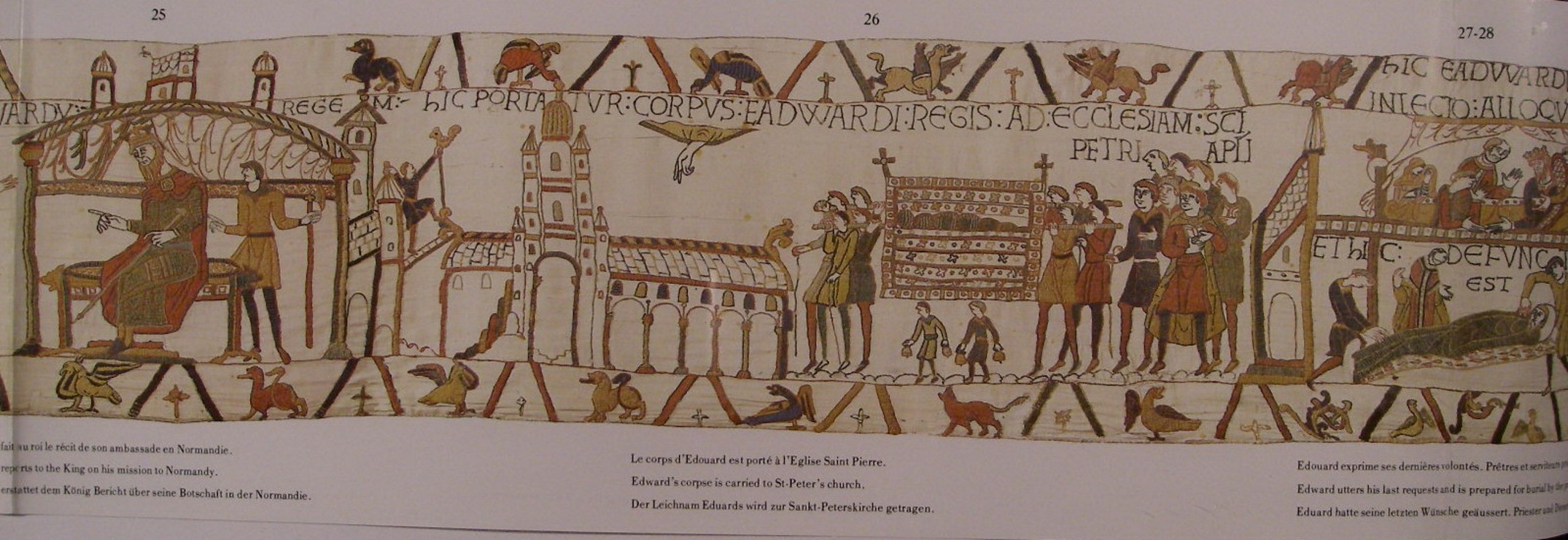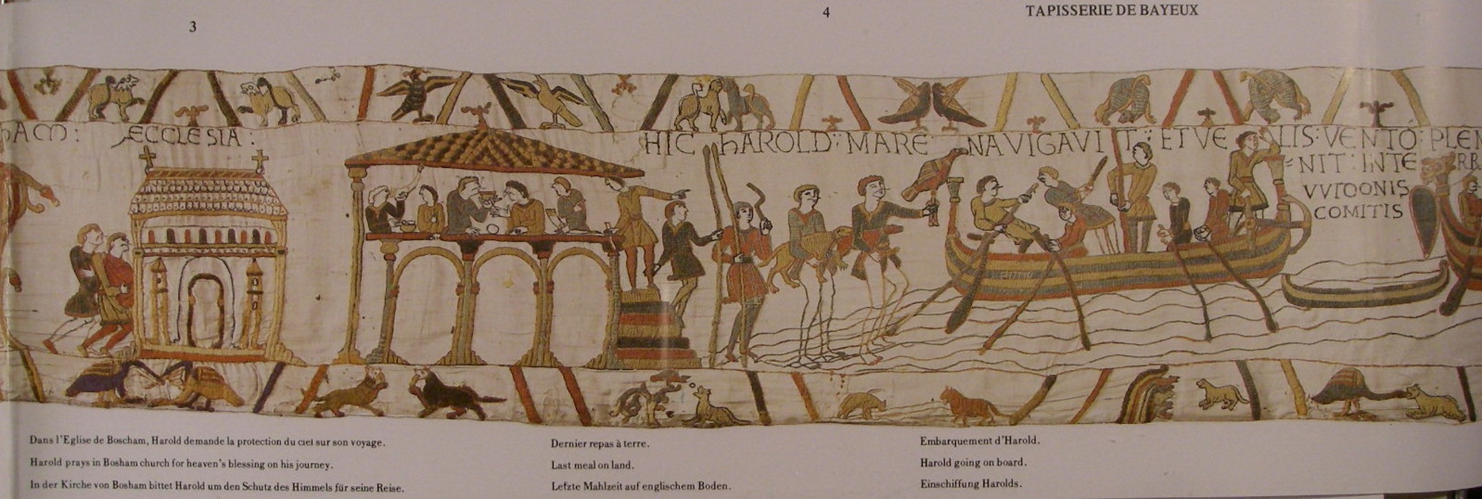 В это время, Эдвард Исповедник, Король Англии, чувствуя, что это его смерть близка и не имея никаких детей, запросил своего зятя Гарольда пойти в Нормандию и информировать Вильгельма, который был Герцогом этой провинции, что он, Вильгельм, был назван Эдвардом как его преемник трона Англии...