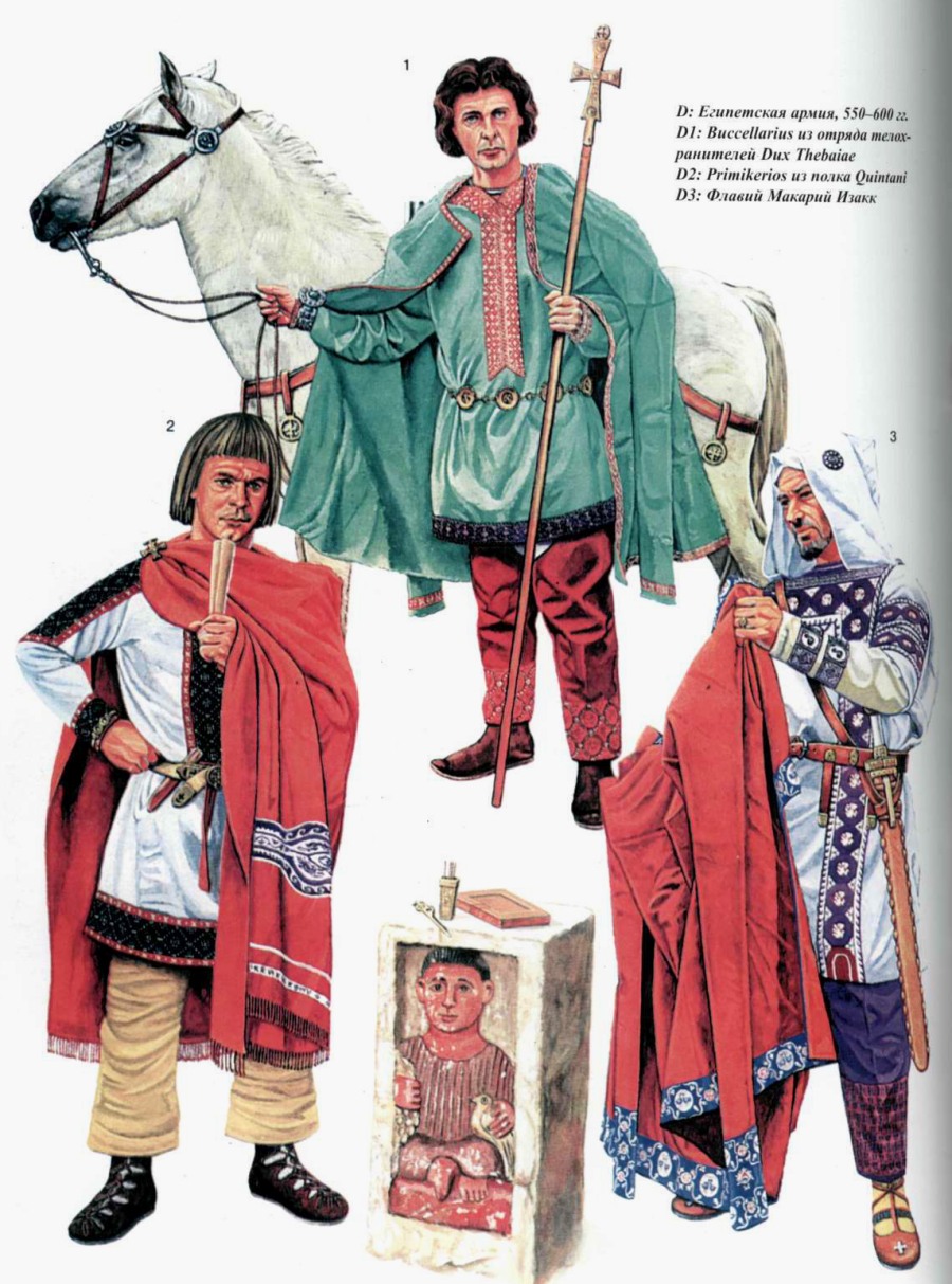 Загальною для чоловіків усіх груп населення Візантії була пізня римська туніка-таларис, прямокутного крою з довгими, до зап'ястя суцільпокроєними або вшивними рукавами, в пізній період ускладнена невеликим розширенням унизу за допомогою вставних клинців.