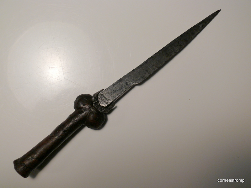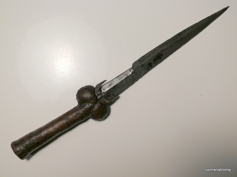 Находится в частной коллекции. Этот  фламандский кинжал найден при раскопках, восходит к началу 17-го века. Он с одним лезвием треугольного сечения. Его деревянная коническая рукоятка  увенчана железным диском. Железные лопасти отделяют доли крестовины от клинка.