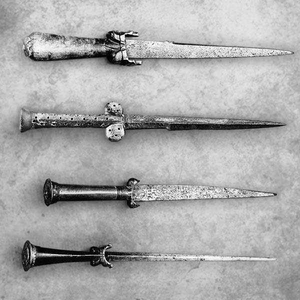 Усекновение главы святого Килиана 1465-1475; хранится Вартберг дер Кремс, Австрия. Обратите внимание на гарду кинжала из трех долей. Кинжалы Баллок в Musee de l'Armee в Париже, Франция. Также присутствует трехдольный  кинжал. Рукояти кинжалов Баллок, найденые на борту судна Мери Роуз, затонувшего в 16 веке. Рукояти вырезаны из кости и самшита  хорошо сохранились, клинки съедены коррозией.
