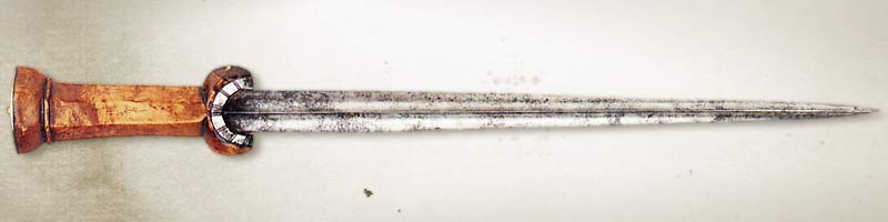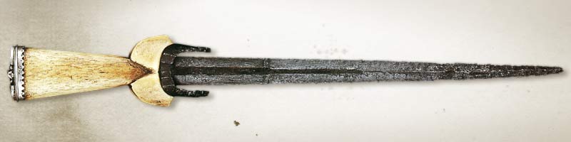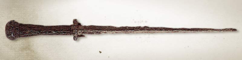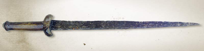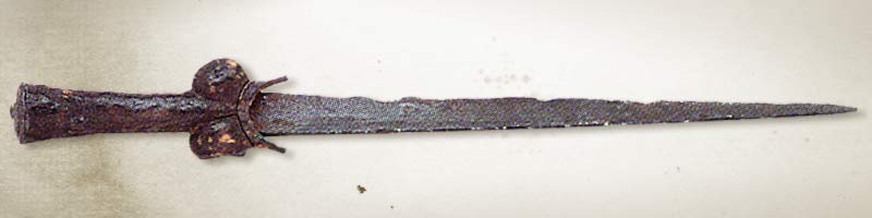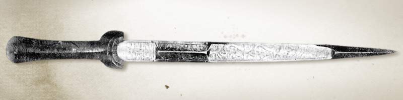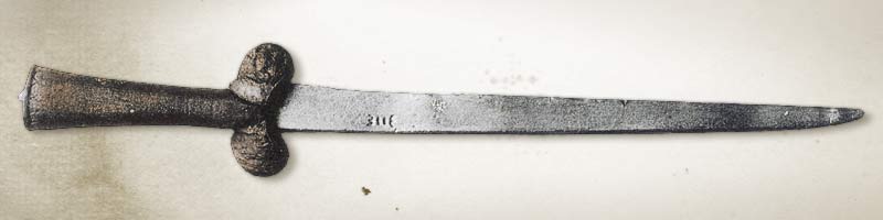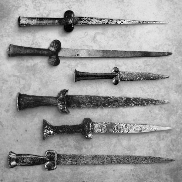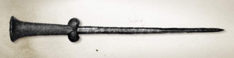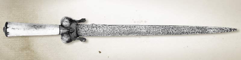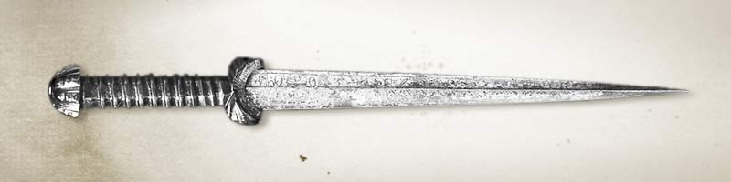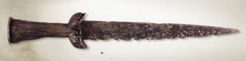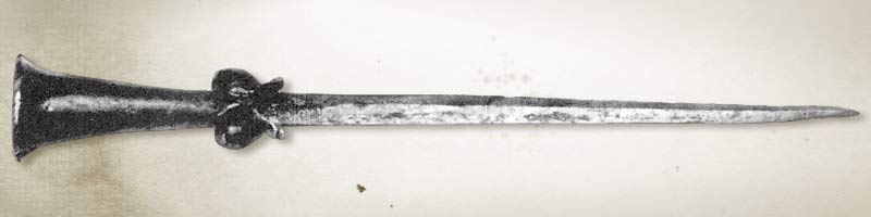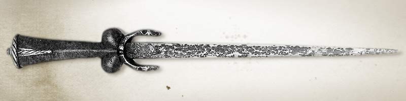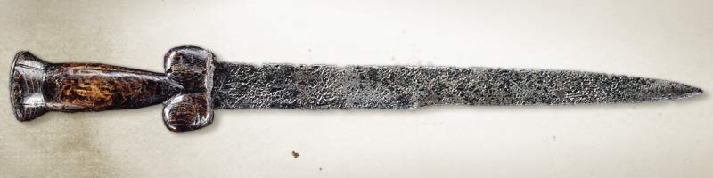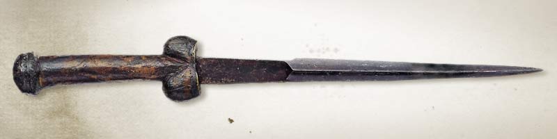 С  the Philadelphia Museum of Art. Это один из редких примеров трехгранного черенка рукояти, трехгранной гарды и трехгранного клинка. Кинжал обнаружен при раскопках  в довольно плохом состоянии.