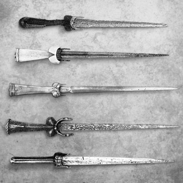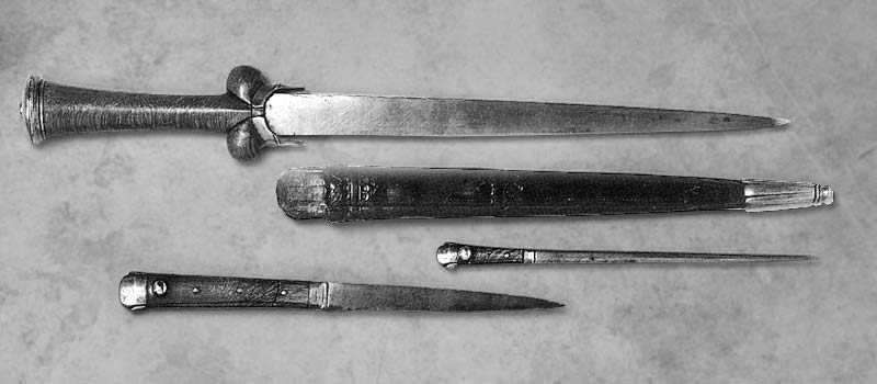 Разнообразие кинжалов милосердия Ранние шотландские кортики, очень похожи на кинжал Баллок Баллок кинжал, Wallace Collection A732, показано с ножнами, шилом, и ножиком.