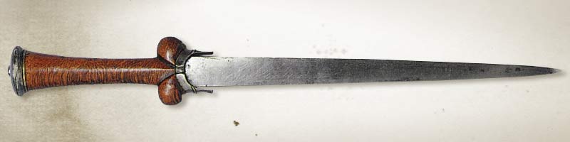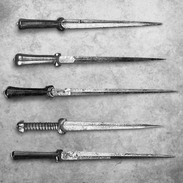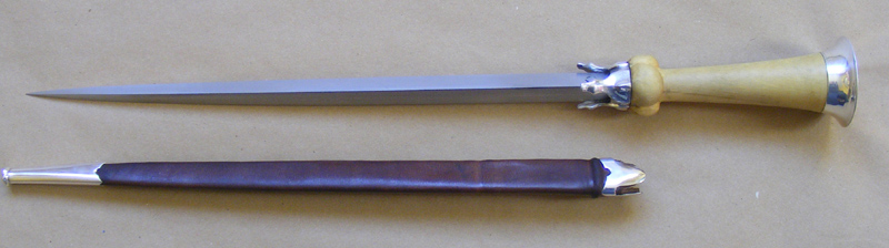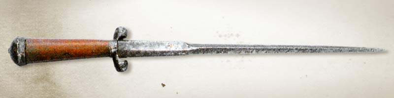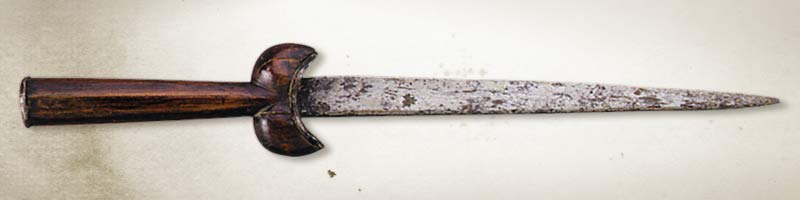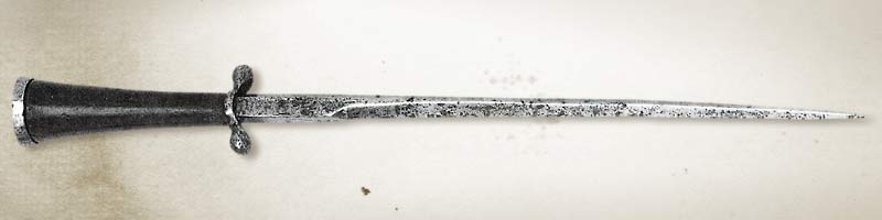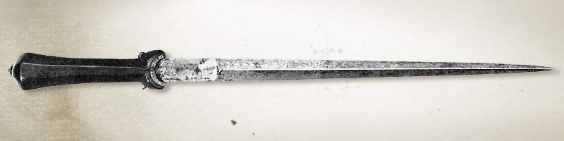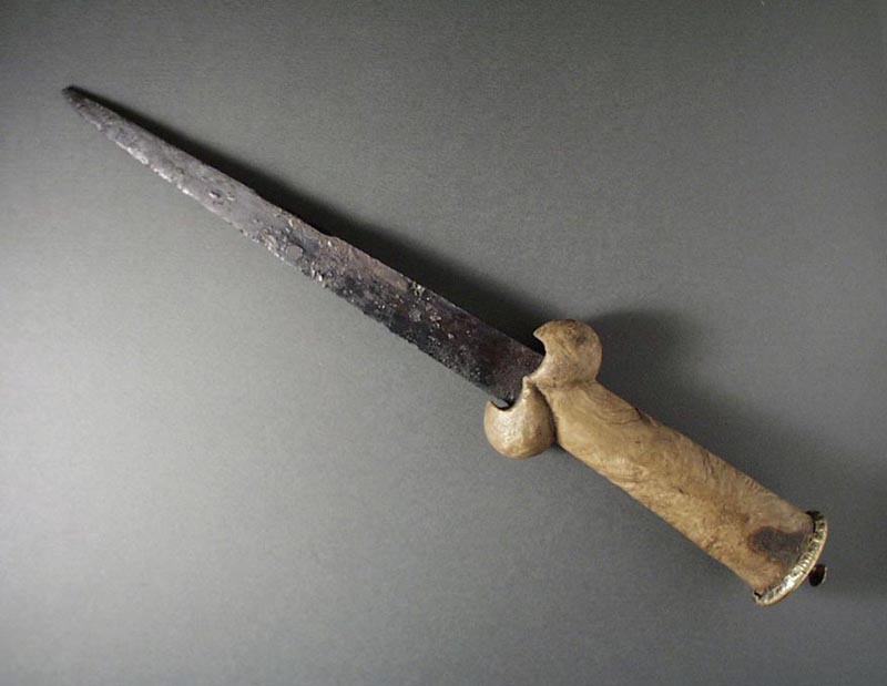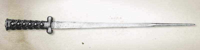 Из the Metropolitan Museum of Art. Датируется второй половиной 15-го века. Этот кинжал имеет  клинок с треугольным сечением набольшей части его протяженности, но клинок заканчивается четырехгранным шилом. Черенок рукояти резной, деревянный, увенчан латунным навершием. Кинжал достаточно большой,  в длину  более 45.7 см (18 дюймов) и вес 311 грамм (11 унций).