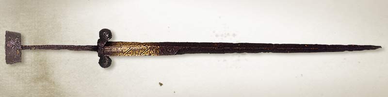Местонахождение неизвестно. Английского или шотландского происхождения. Один из немногих образцов 14 века. Уникален еще тем что имеет дополнительные заклепки на гарде.