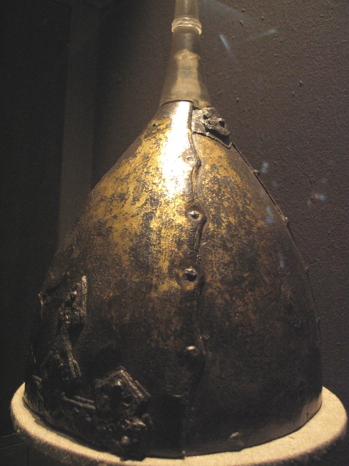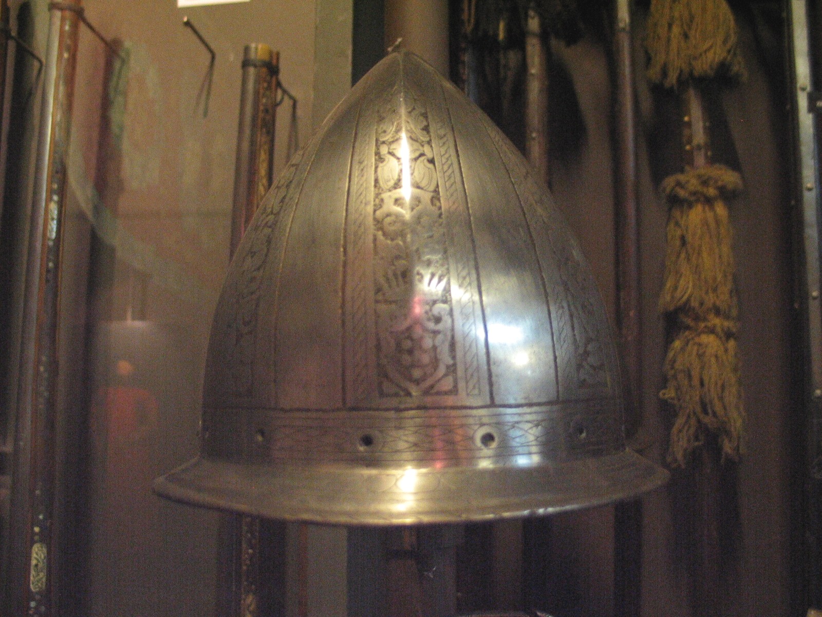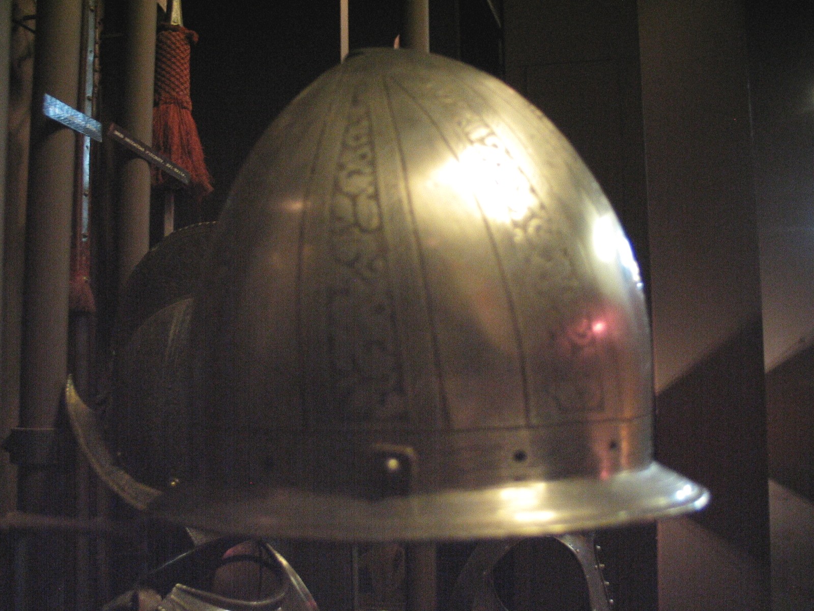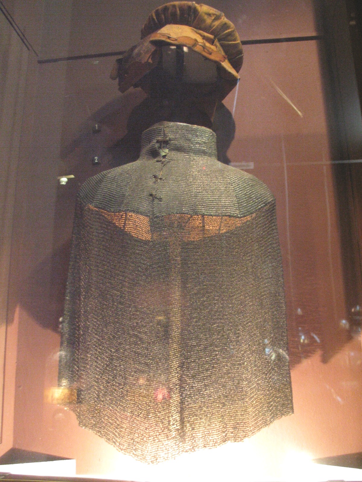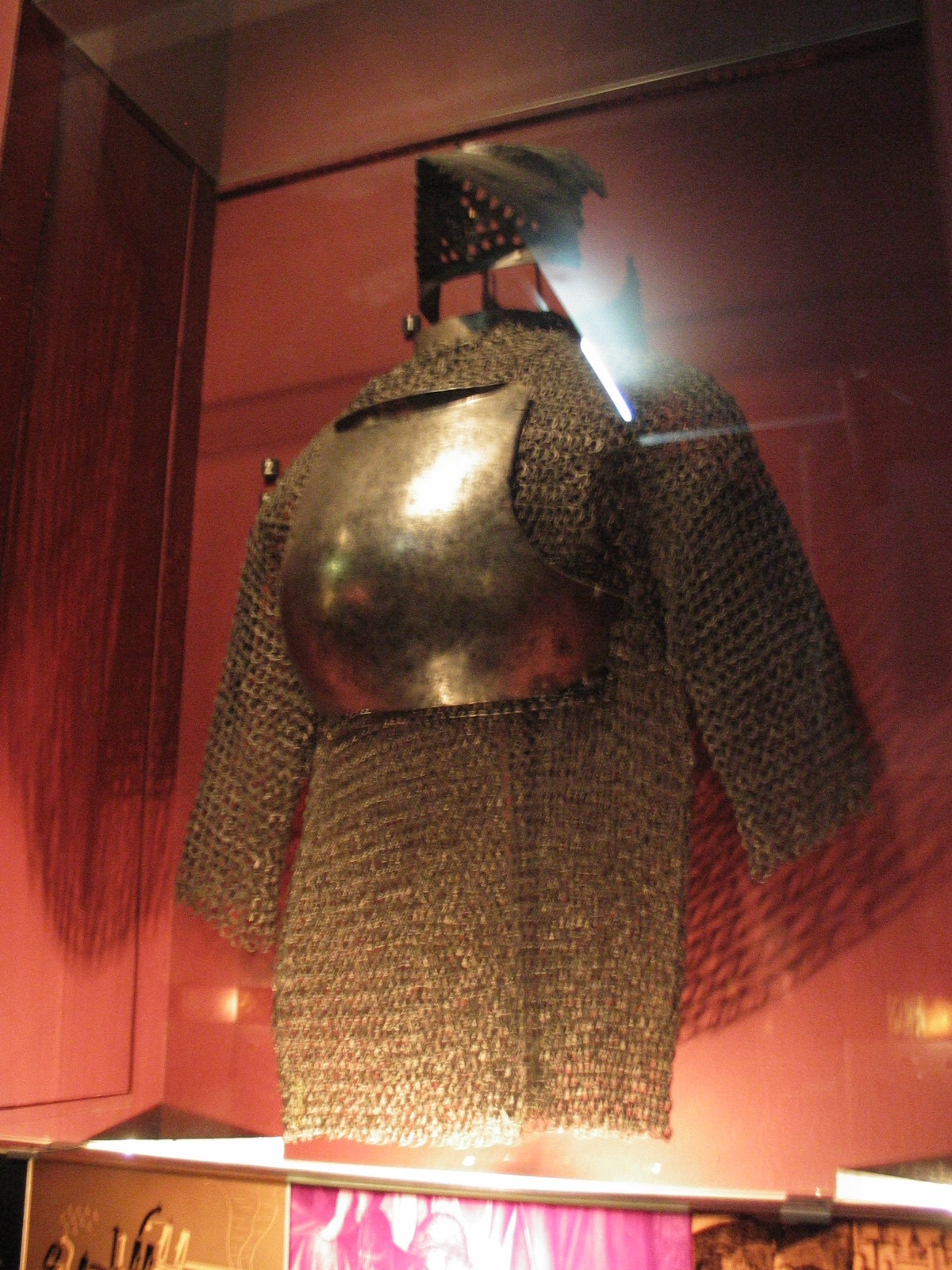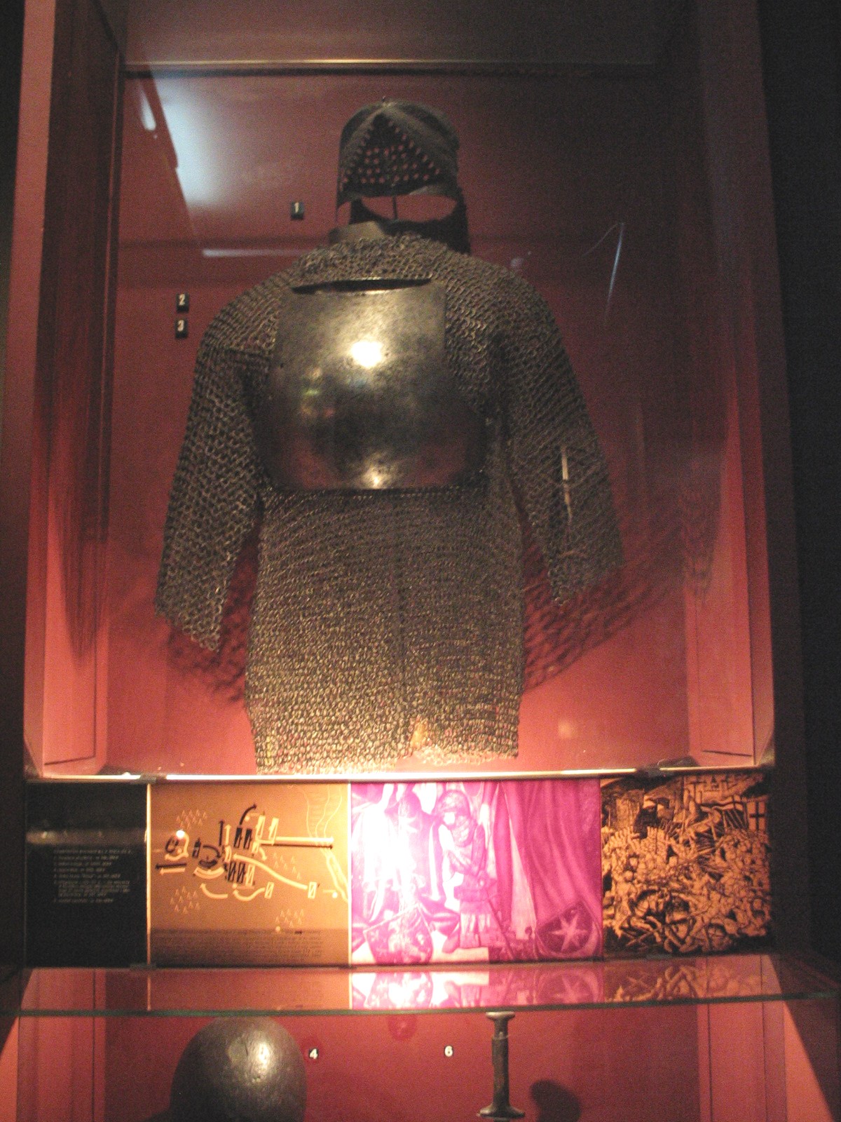 1) С кольчужным доспехом первой половины 14 века идет не оригинальный топфхельм, а реплика.