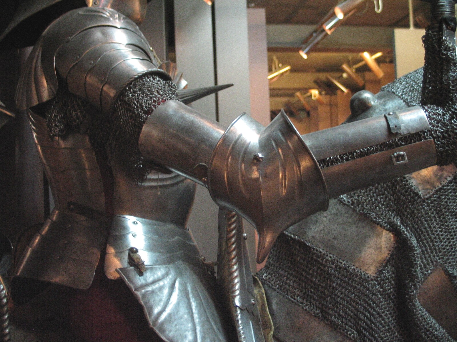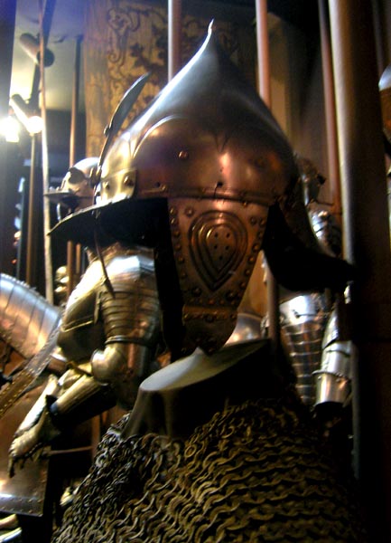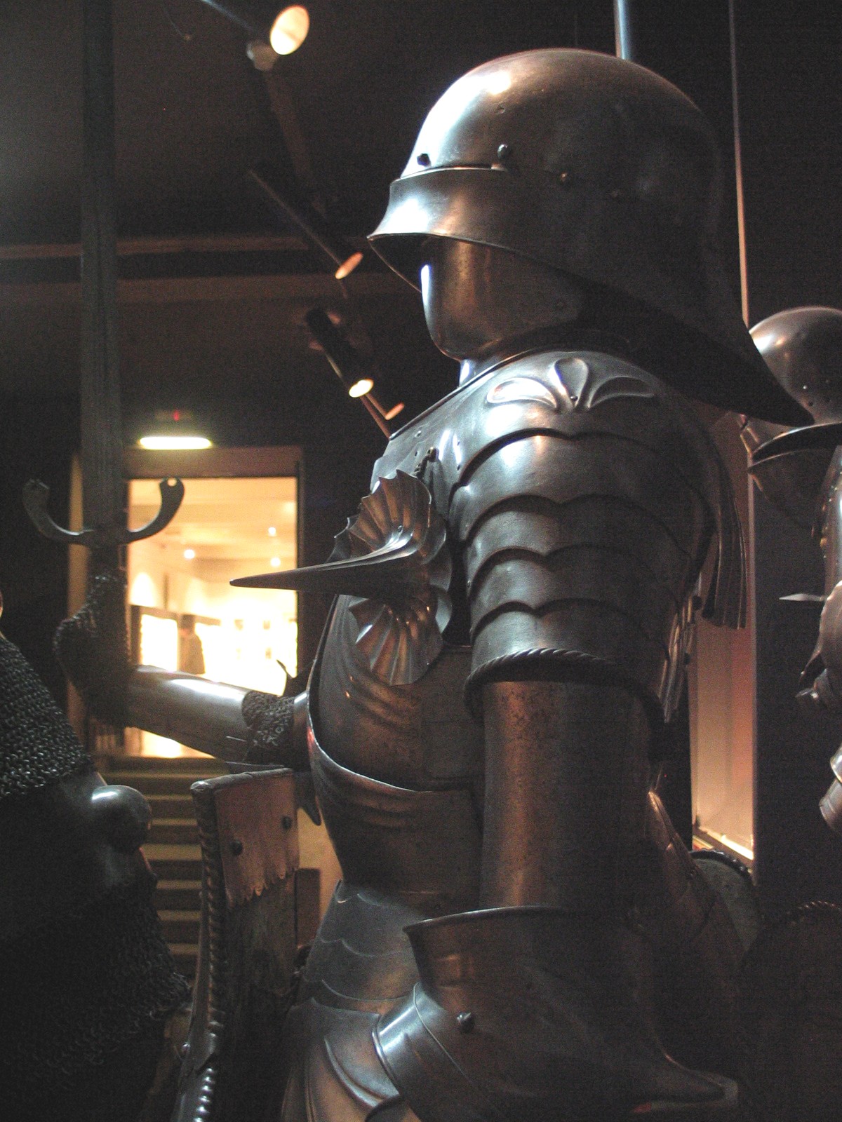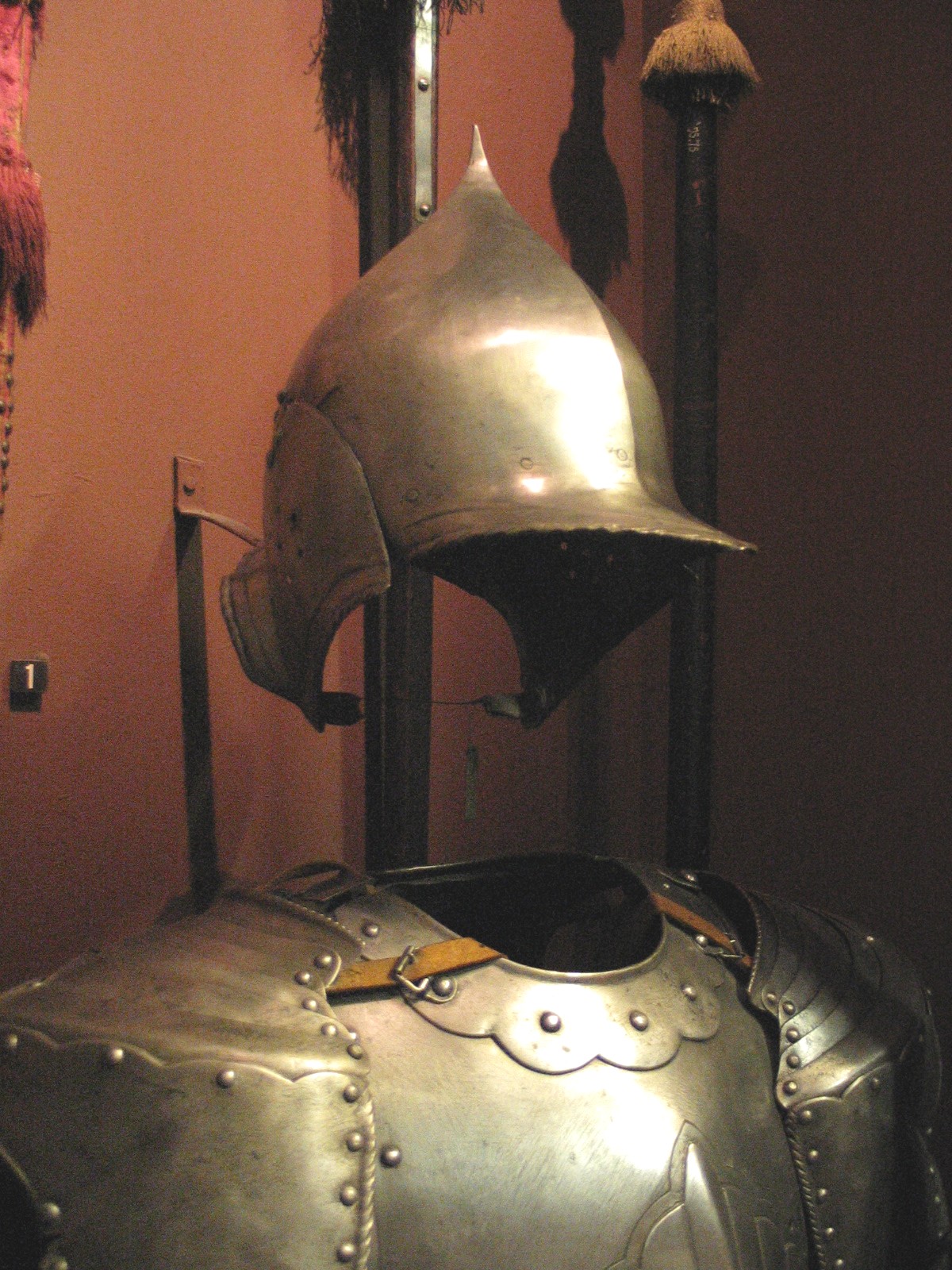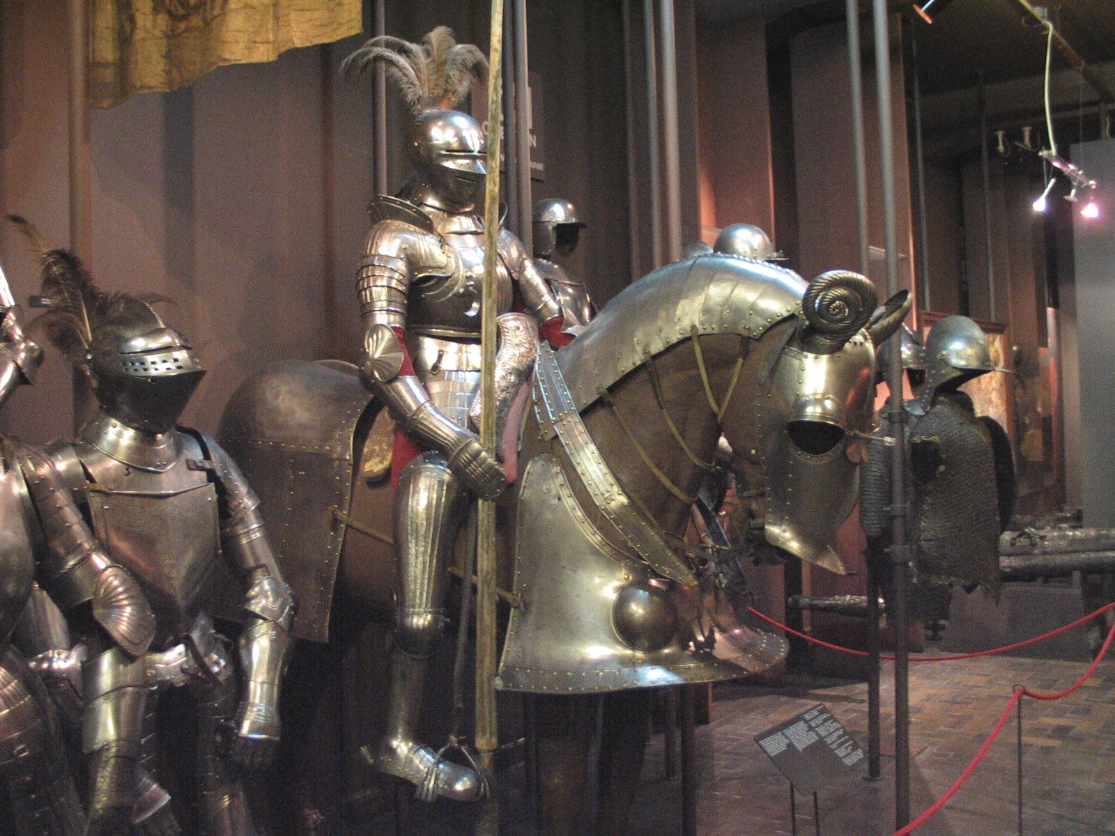 1) С кольчужным доспехом первой половины 14 века идет не оригинальный топфхельм, а реплика.