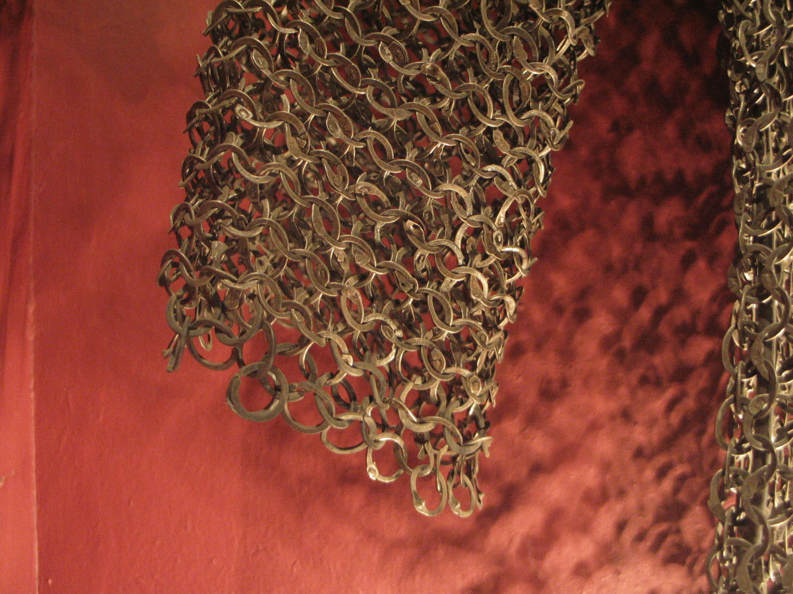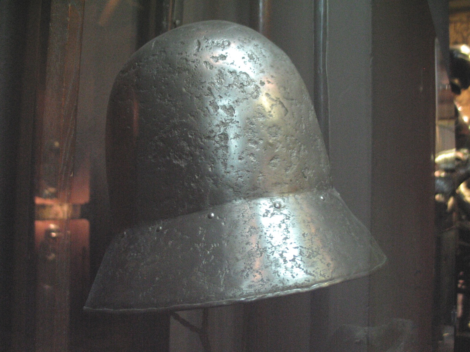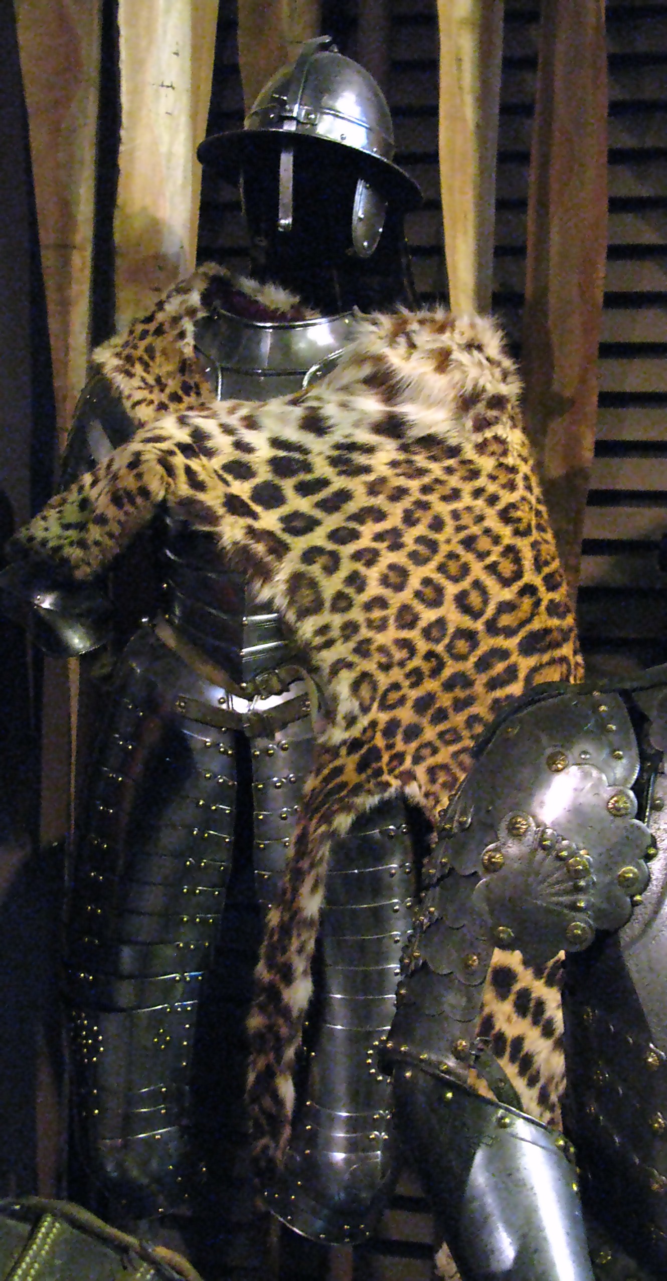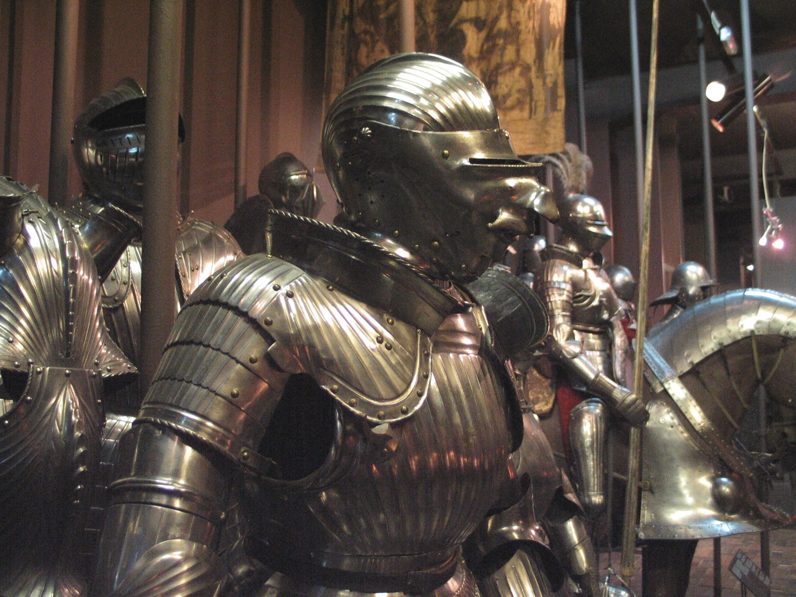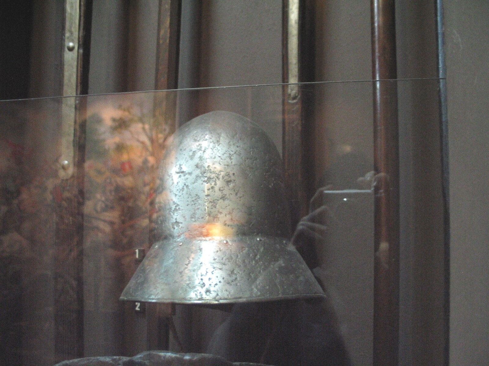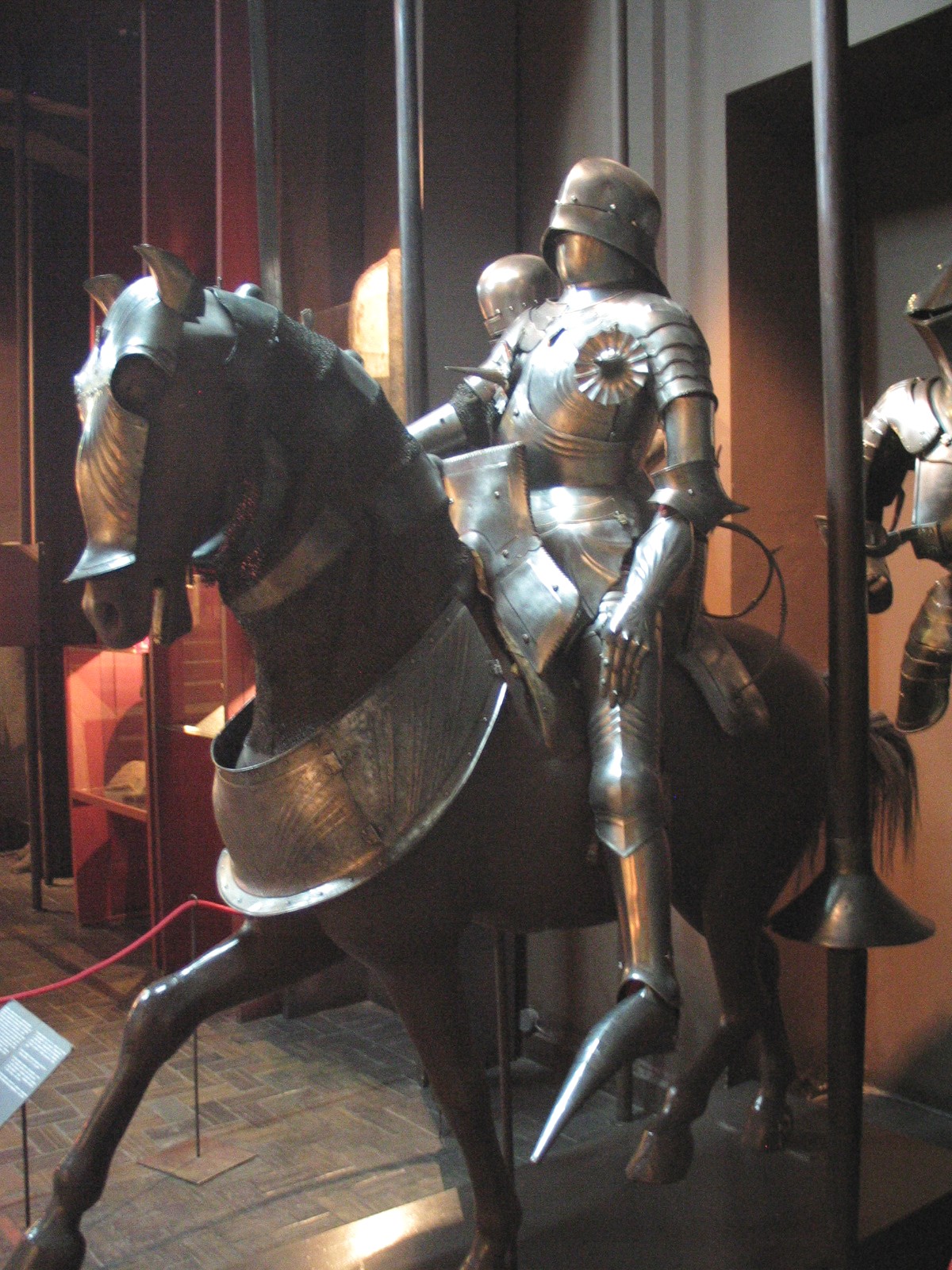 1) С кольчужным доспехом первой половины 14 века идет не оригинальный топфхельм, а реплика.