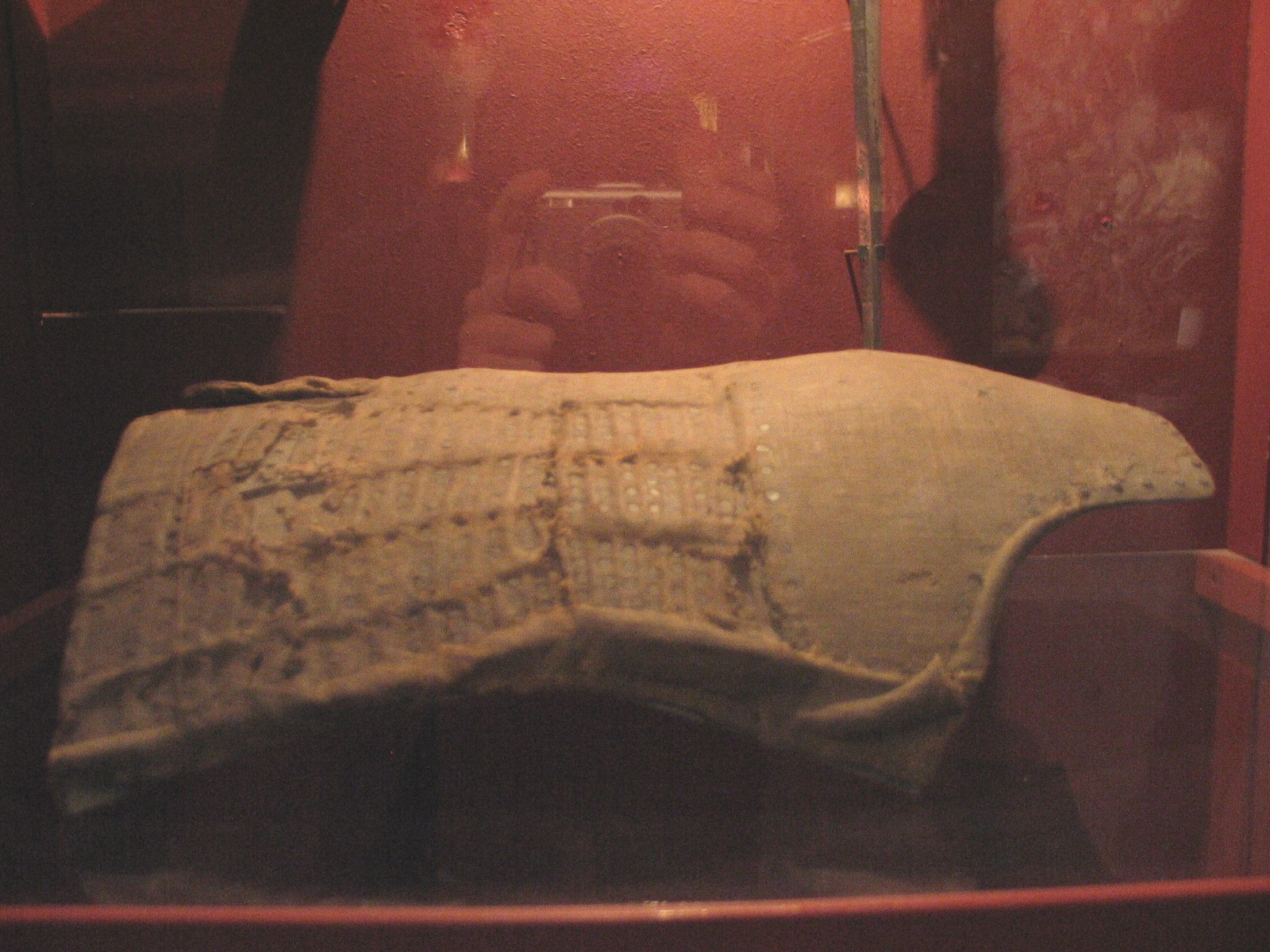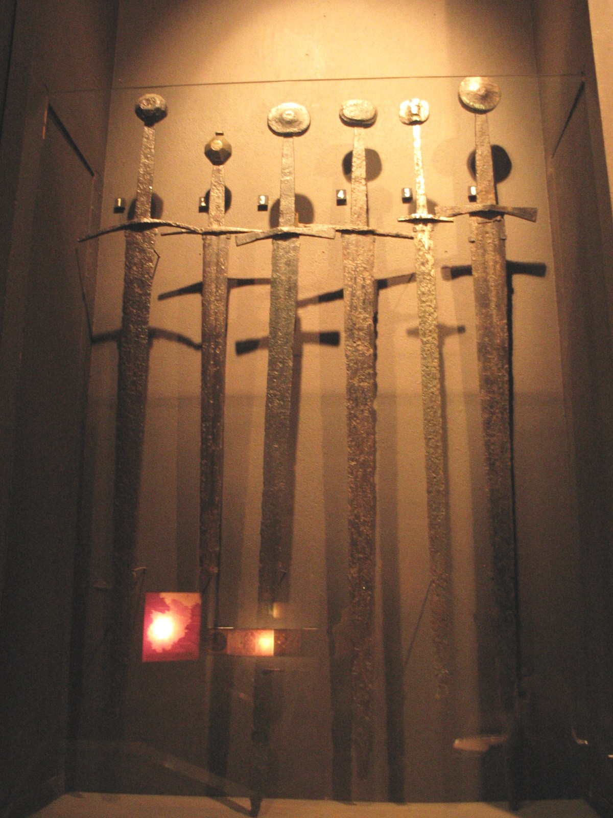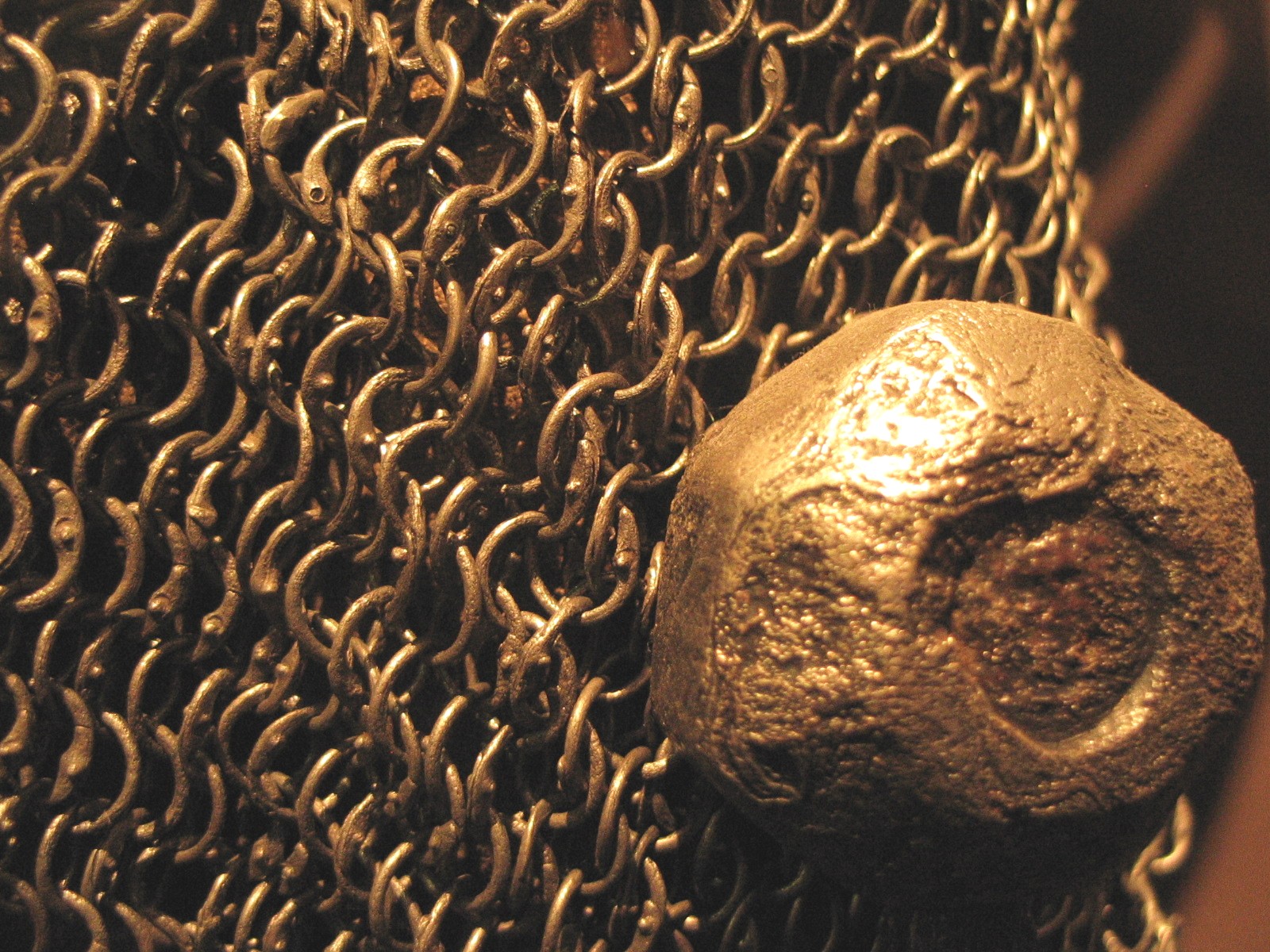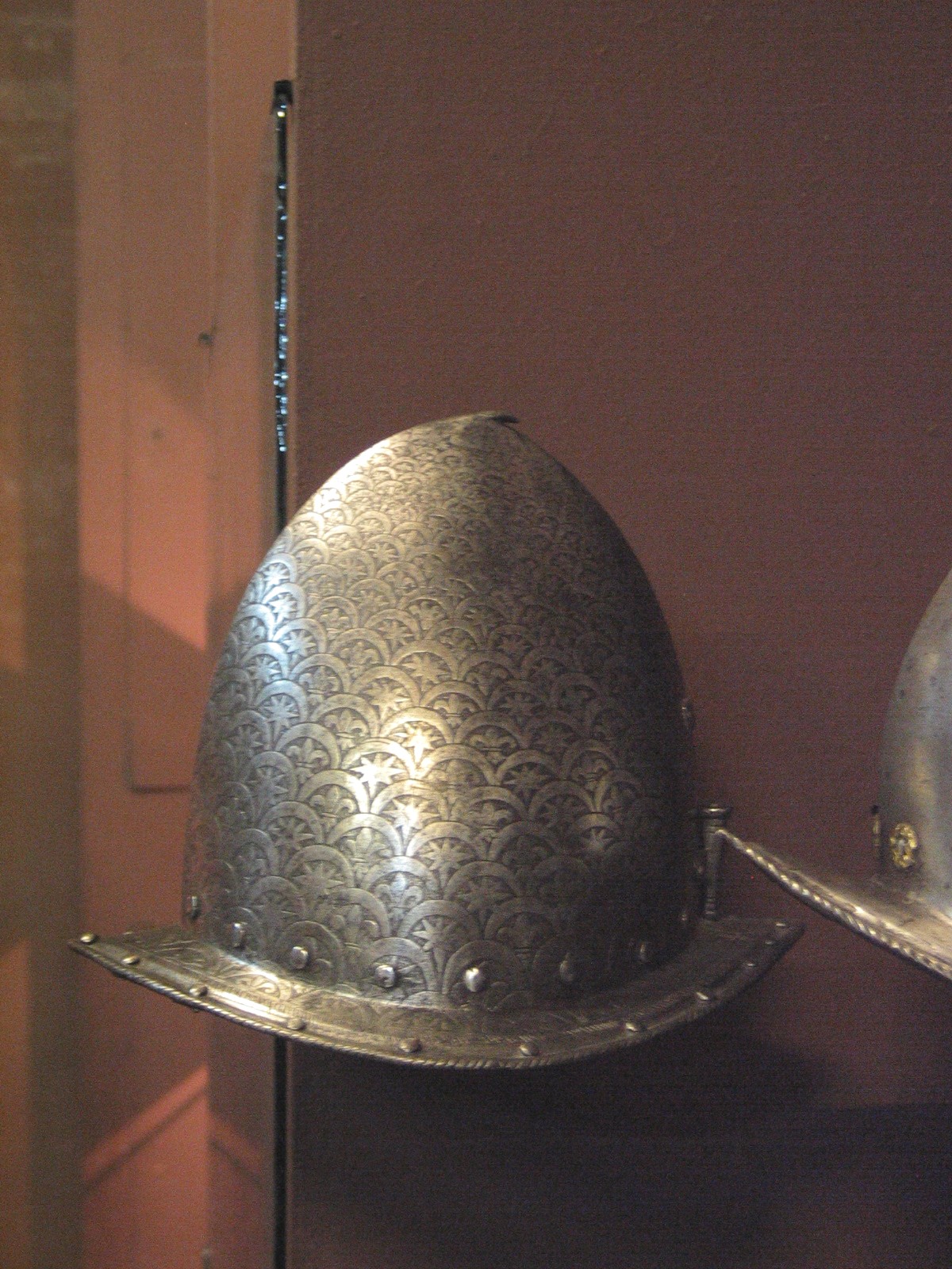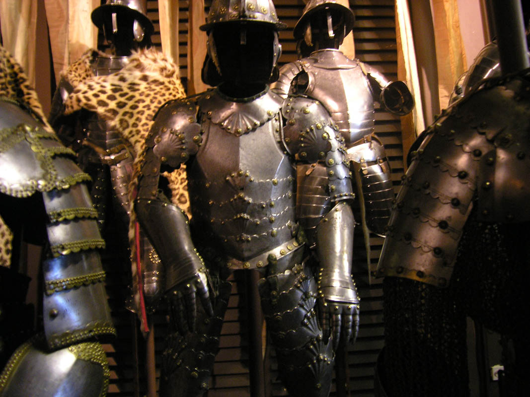 1) С кольчужным доспехом первой половины 14 века идет не оригинальный топфхельм, а реплика.