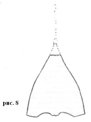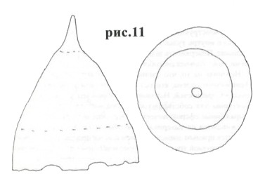 Условимся о терминах. Под термином "сфероконический" подразумевается геометрическая фигура, образованная полусферическим основанием, продолженным вверху конусом с обратным изгибом образующих или конусом с углом в вершине более 90". Может сопровождаться выраженным цилиндрическим основанием – "венцом" в нижней части.