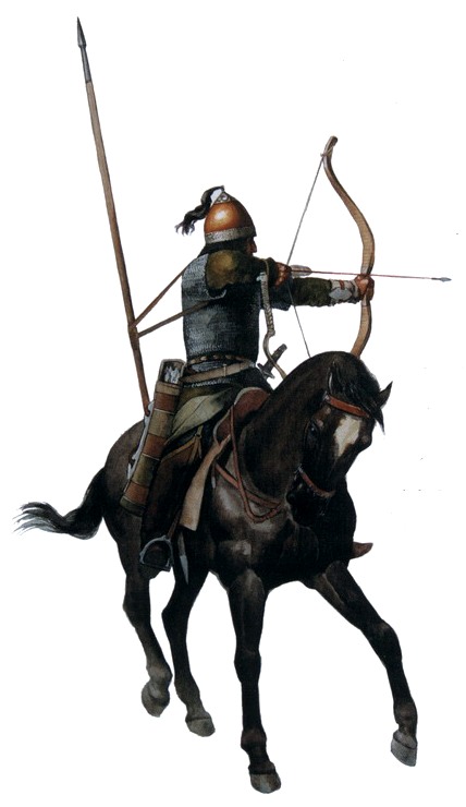 При этом следует отметить, что на сто погребений первой группы приходится не более 1-2 погребений третьей группы, а зачастую, данное соотношение еще меньше. Отсутствие сколь либо значительного числа защитного снаряжения у половцев отмечают византийские и европейские хронисты. Описывая столкновения с половцами на территории Византийской империи, они указывают тот факт, что половцы одеты в шкуры и вооружены луками. Соответственно, подавляющие большинство половецких воинов являлось легкими стрелками из лука, практически не пригодными для рукопашной схватки в связи со слабостью вооружения. Поэтому так редки в русских летописях упоминания о прорывах половцами боевых порядков русских воинов. Примером могут служить данные "Повести временных лет", описывающие битву на реке Хорол первого марта 1184 г., и сведения "Слова о полку Игореве". В большинстве победы, одержанные половцами над русскими, обусловлены даже не столько численным преимуществом первых, сколько уроном, причиняемым массированным обстрелом. В случае, когда русские рати не выдерживали обстрела и расстраивали свои боевые порядки, обращаясь в бегство, победа сопутствовала половецким вождям. Наличие незначительного числа хорошо вооруженных воинов, распределенных по отдельным отрядам, как правило, вожди разного ранга и богатуры, не позволяет говорить о какой-либо тактике использования "латной" кавалерии существующей у половцев.