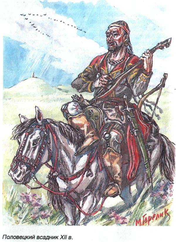 В начале X в. на территорию восточноевропейских степей из-за Уральских гор стали прибывать племена турко-язычных, монголоидных кочевников-кипчаков, именуемых в русских летописях половцами, а в западноевропейских источниках - куманами. В X в. по свидетельству Худуд-ал-Алему кипчаки проникли в Заволжье и расселились севернее кочевий гузов (торков в русских летописях) и печенегов. В начале XI в. половцы двинулись за Волгу и стали приближаться к границам Руси. Общность вторгшихся кипчакских племен была явлением достаточно условным. Половцы не имели единого вождя и представляли собой союз отдельных независимых родов, объединенных общим языком, культурой, обычаями, верованиями и этнической принадлежностью. Воинская обязанность была организована по принципу народ-войско, где не только все мужчины способные носить оружие являлись воинами, но и незамужние девушки. Безусловно, на тот момент существовали рода более могущественные в военно-экономическом отношении. "Худые" кланы старались войти в состав более сильных племен. В процессе объединения нескольких родов под предводительством единого вождя можно было наблюдать процесс формирования родоплеменной общности с поэтапным переходом к военной демократии. Формирование единого родоплеменного союза, его последующая трансформация в единую орду (единый союз племен), а затем и в некое государственное образование так и не было завершено, несмотря на объединение в конце XII в. под властью хана Кончака, а потом его сына Юрия Кончаковича. Произошло это по целому ряду Причин. Изначально большинство кипчакских родов стремилось к доминированию и самостоятельности. А положило конец независимости Половцев в данном регионе вторжение в XIII в. монголо-татарских войск и образование на территориях половецких кочевий Золотой Орды. Помимо этого, со стороны русских князей, принимался ряд мер, направленных на внесение противоречий в среду кочевой знати, с целью не допустить возвышения одного рода либо вождя. Это проявлялось не только в военных походах XII в., но и в поддержке одного половецкого вождя в противостоянии с иными претендентами на гегемонию в пограничном Руси степном мире.