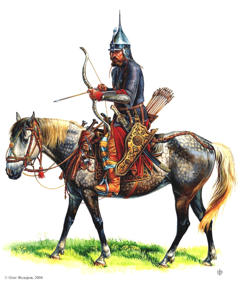 В эпоху Смутного времени начала XVII в. закончил свое существование многовековой стандарт вооружения русской конницы, имевший в качестве основного оружия «дальнего боя» лук («саадак») и предполагавший наличие защитного вооружения. На смотры, проведенные в 1620-1621 гг., подавляющее большинство дворян и детей боярских явилось с саблями и пищалями; через десять лет, в период Смоленской войны 1632-1634 гг., заметную долю в их арсенале стали составлять карабины и пистолеты. В особенности эти перемены заметны по северо-западным уездам России — Новгороду, Пскову, Великим Лукам и т. д. С самого конца XVI в. и до 1620-х гг. эта конница не участвовала в охране южных границ от татар, и здесь выросло уже целое поколение служилых людей, мало знакомых с «лучным боем» и вообще с особенностями традиционной «береговой службы». В итоге, в 1621 г. с луками являлся на смотр только каждый двадцатый конный новгородец, а из лучан в 1631 г. «в саадаке» явился только один1. В целом та же картина наблюдается и в центре страны, в «замосковных» уездах; только на юге, в так называемых «украинных» и «польских» городах саадак сохраняется в качестве обычного вооружения.