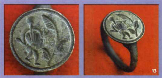 Перстни. Литье, гравировка. 12 – оловянисто-свинцовый сплав; 11 – серебро; 10-13 – медный сплав;