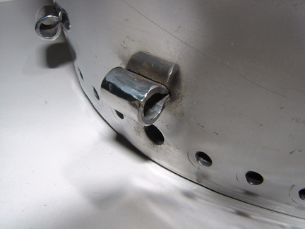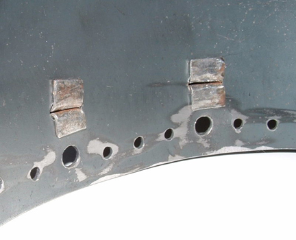 Способ "Через петлю у нижнего края тульи" предполагает наличие двух продолговатых отверстий на против друг друга так чтобы они находились у загнутого в трубку края. Нижний край трубки, естественно, не просверлен. В эти продолговатые отверстия и вставляются колечки края бармицы.