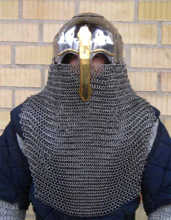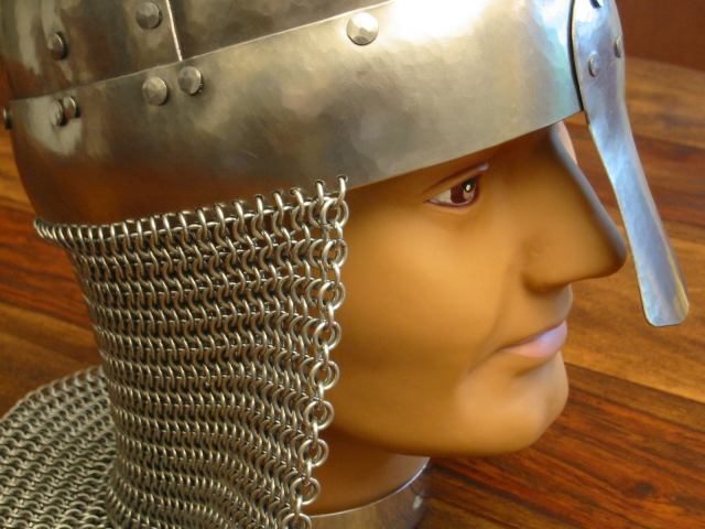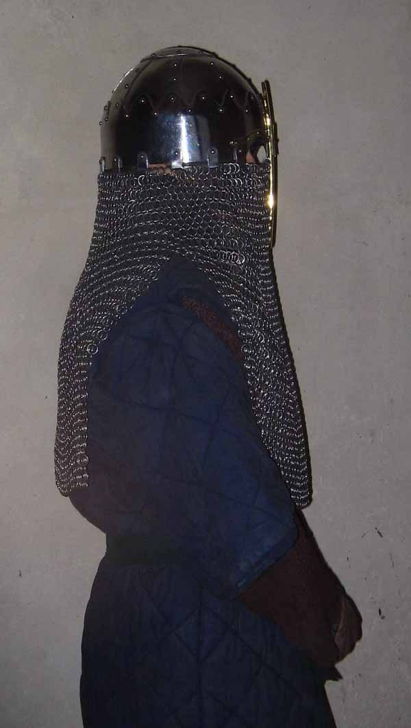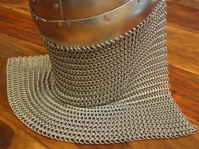 между краем шлема и бармицей есть хоть и очень узкий, но все же промежуток в который может попасть стрела или нанесен удар кинжалом;