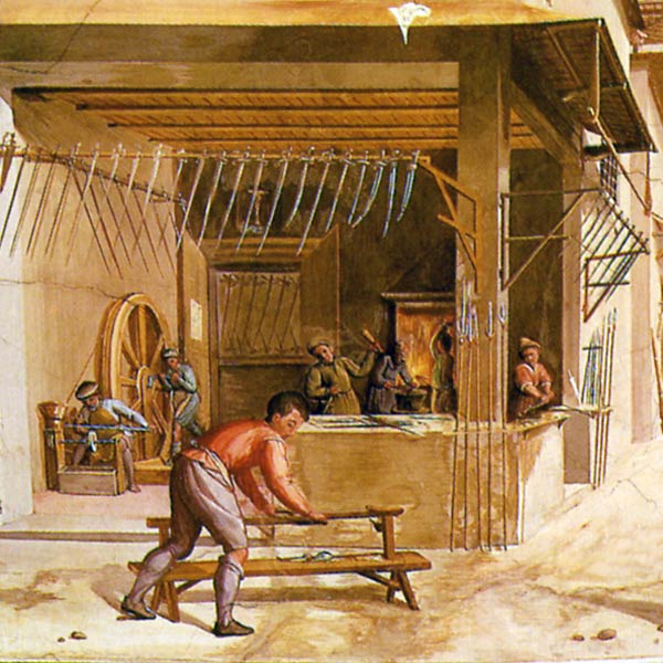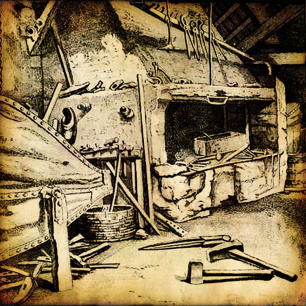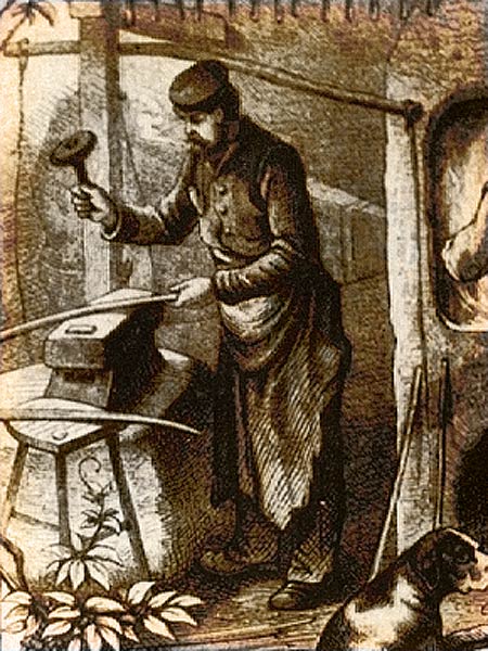 | Bladesmith - кузнец изготовляющий клинки | Шахтеры, работающие в шахте ок. 1482 г. | Крейг Джонсон кует клинок |