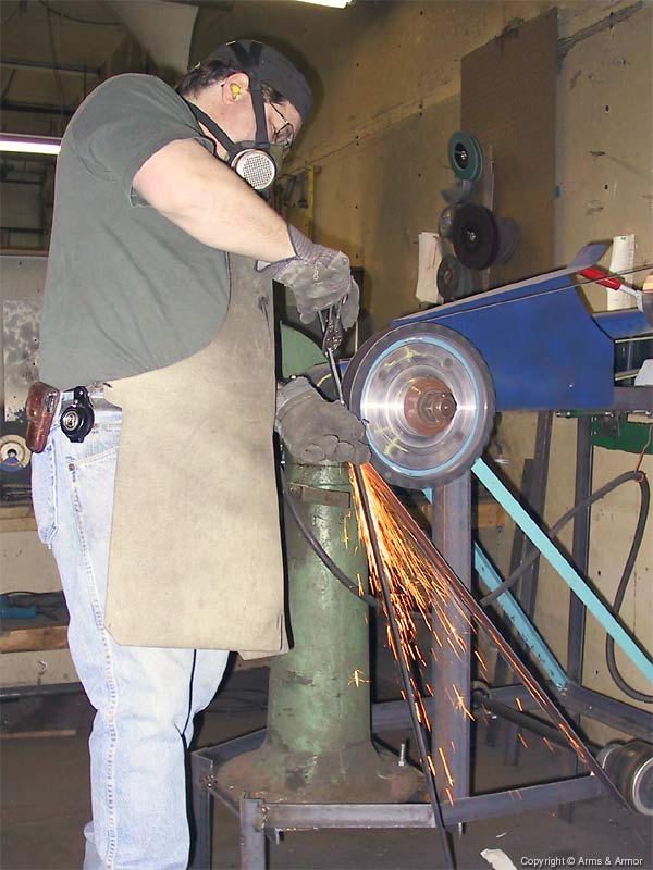 Съём подразумевает спиливание всего лишнего с заготовки для получения правильного профиля клинка. В наши дни, иногда, берут полотно очень большой пилы и распиливают на несколько заготовок клинков. Современные методы съема не могут быть столь уж далеки от исторической нормы, как считалось ранее. Оба процесса могут производить клинки, которое является полностью функциональными и хорошо сделанными. Средневековые иллюстрации также показывают, использование больших жерновов для обработки металлических заготовок.