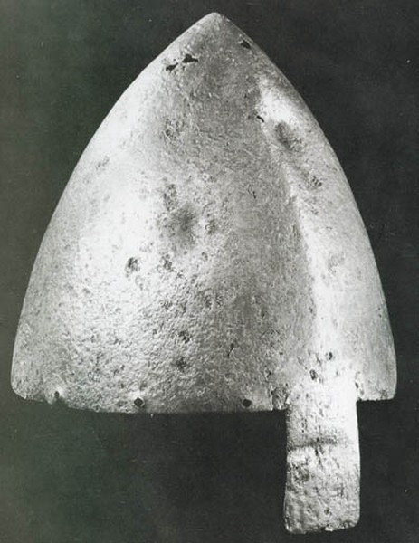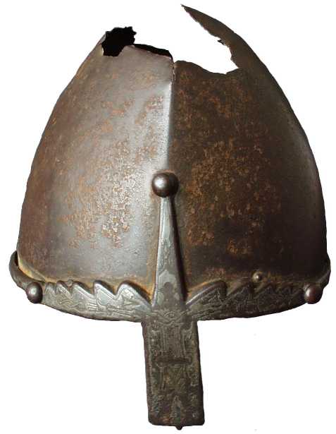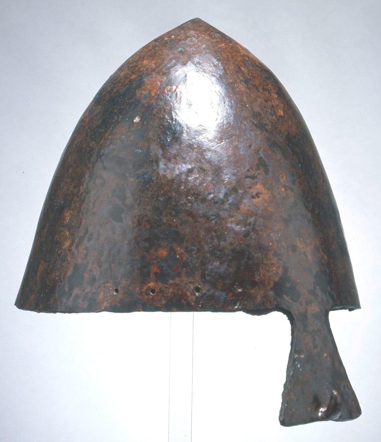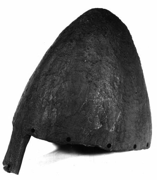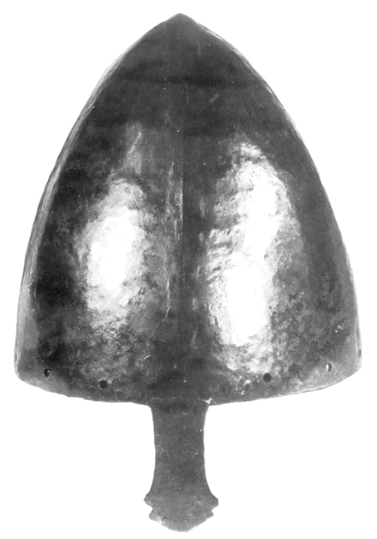 Шлем из Ледницкого озера (Helm von Ostrow Lednicki), 11-12век: "На краю шлема отверстия, которая служили для крепления защиты шеи." (4)