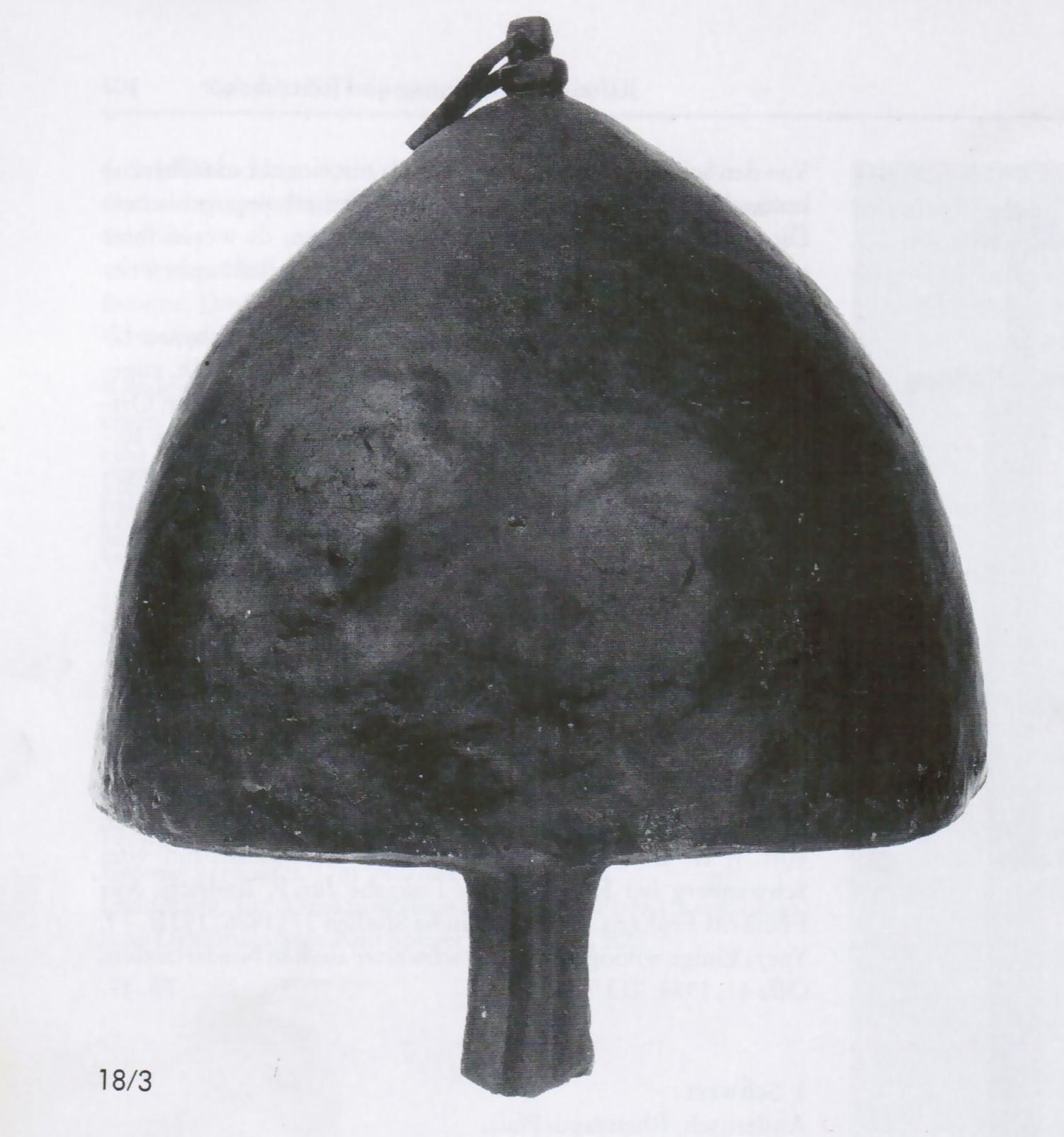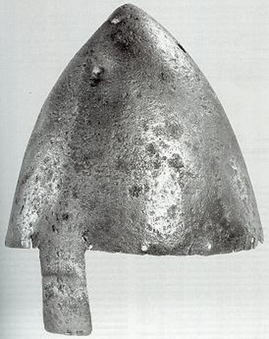 Шлем Печ, конец 10-го Века: "В нижней части купола все еще присутствуют остатки креплений для кольчуги ." (4), ссылка