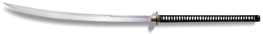 Рукоять: 58.4 см (23") Оплетена черной кожей ската с медным менуки.