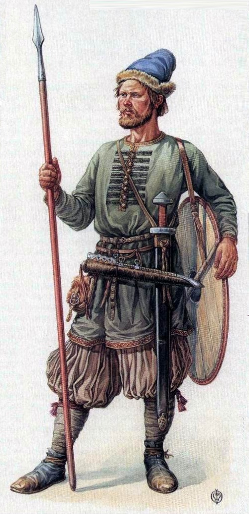 Источник: Древнерусский дружинник второй половины X века, опыт реконструкции. Сергей Каинов Соавтор реконструкции Олег Федоров Военный сборник Статьи и публикации по Российской военной истории до 1917 года. 2010 год.