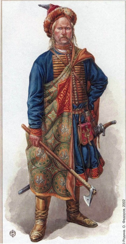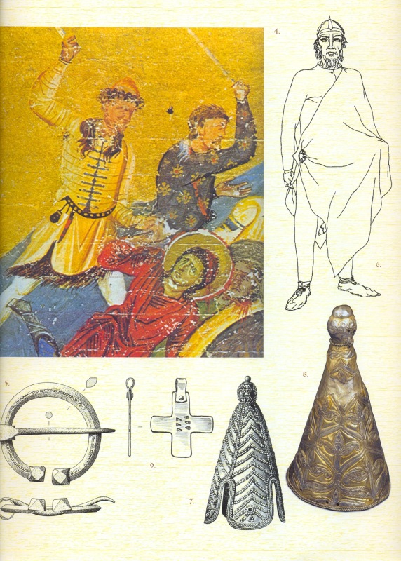Об этом явлении материальной культуры IX-X веков, основываясь на данных археологии, можно сказать относительно немного. Только привлечение письменных и изобразительных источников позволяет с определенной долей условности реконструировать те или иные детали одежды представителей воинского сословия того времени.
