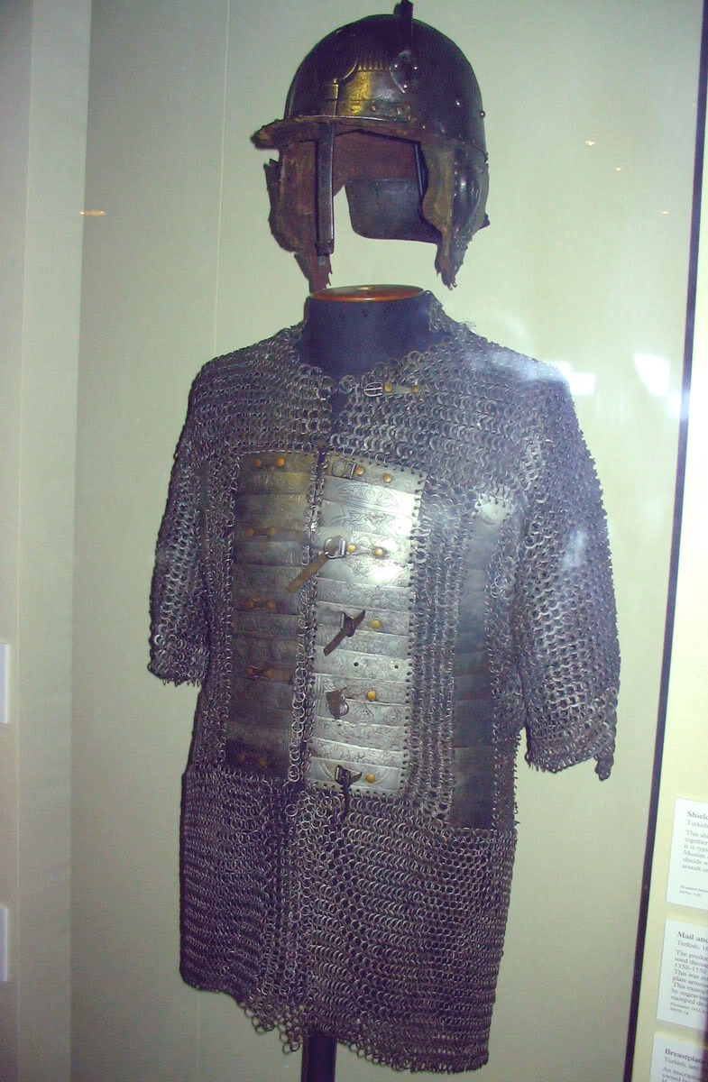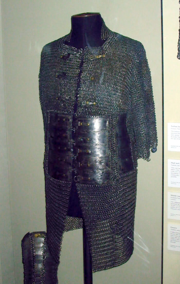 Наиболее популярным корпусным доспехом, характерным как и для Турецкого так и Индо-персидского стиля была кольчуга из плоских колец, склепанных круглой заклепкой. Кольчуга во многих случаях представляла из себя рубаху с рукавами различной длины. Кольчужные рубахи спереди были длиной до середины бедра, но сзади не закрывали задницу – так было удобно ездить на коне и пах защищен, но часто спереди у кольчужной рубахи был разрез. Применялась кольчуга от древних времен до начала 19 века. В регионе турецкого влияния иногда использовалась и персидская кольчуга байдана из очень крупных расплющенных скрепленных заклепками колец. Но байдана не характерна для египетского Мамлюцкого стиля доспеха. Естественно что прогресс не останавливался и для совершенствования скромных защитных свойств кольчуги в неё вставляли стальные пластины. По турецки кольчужные рубахи называются zincir gömlek, а всеобщее название кольчужных доспехов Örme zincir.