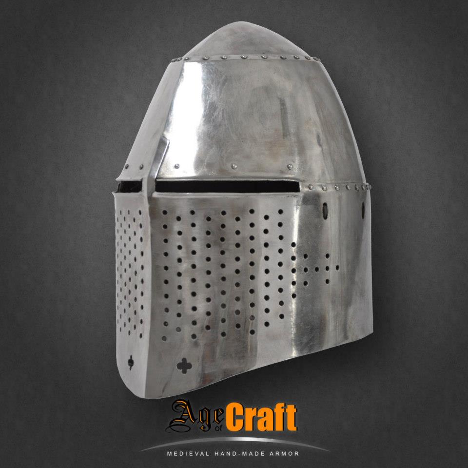 Рад представить вашему вниманию новую товарную позицию нашего каталога. Шлем типа топфхельм является некмирающей классикой в движении исторической реконструкции. Такие шлема использовались западноевропейскими рыцарями с начала 13 века - по конец 14 и и железно ассоциируются с рыцарями. Шлема такого типа относительно просты в изготовлении, но предоставляют своим владельцам полную защиту головы - что и обеспечило им такую долгую жизнь.