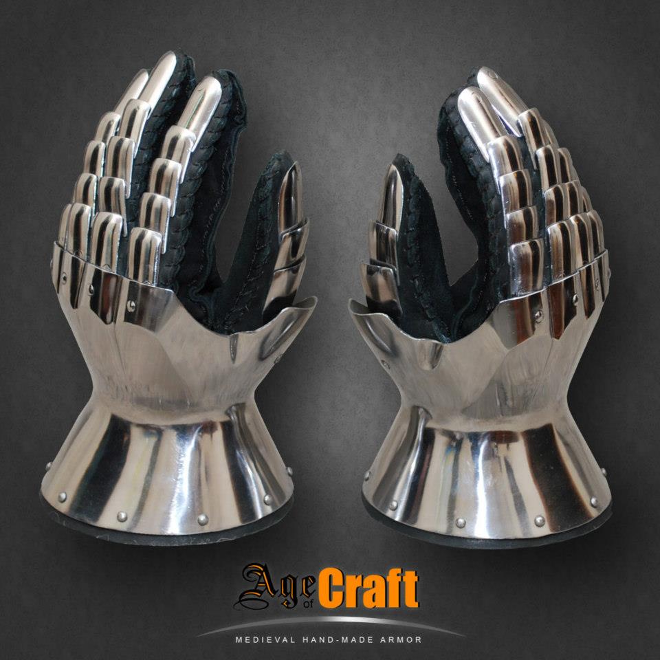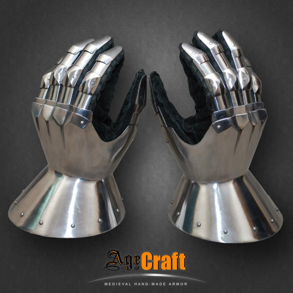 Западноевропейская латная перчатка "песочные часы" названа так от того что в своей основе она состоит из монолитной латной рукавицы без пальцев защищающей пястье и запястье и по форме похожей на  песочные часы. Пальцы подобных рукавиц защищены чешуйками, крепящимся к кожаной основе пальцев. Естественно под стальной частью рукавицы спрятана кожаная рукавица с мягкой подкладкой.