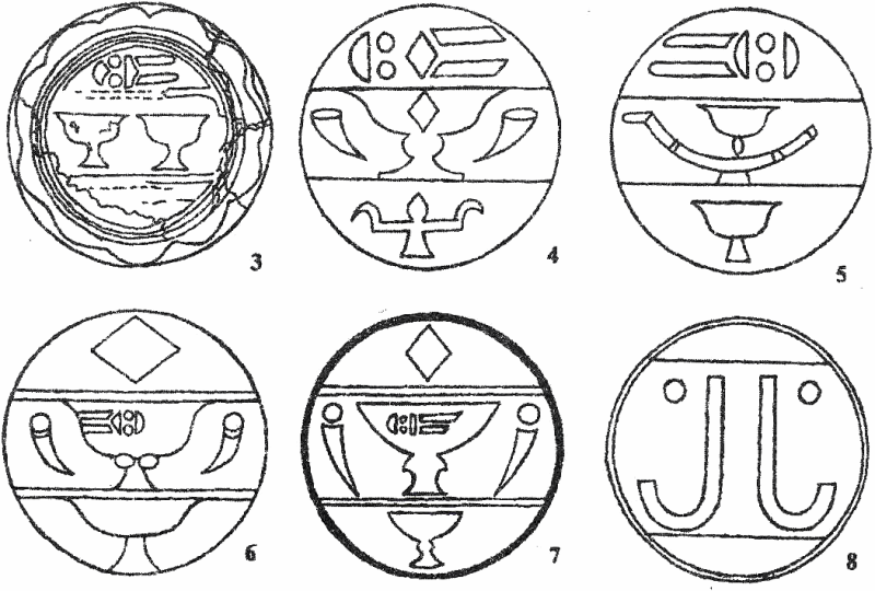 | Рис. 4. Мамлюкский шестопер, найденный на территории современных Палестины или Ливана. Частное собрание. | Рис. 3. Образцы личных мамлюкских гербов «ранк» (по [22]). |